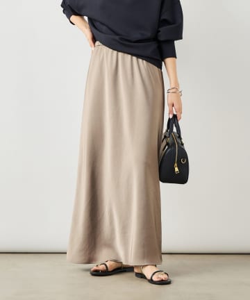 《セットアップ対応》ウォッシャブルバックサテンタイトスカート
