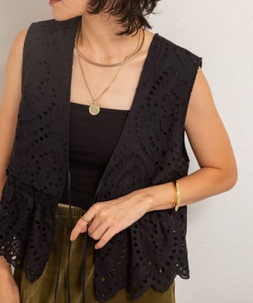 【MAQWEL】《セットアップ対応》ウォッシャブルエンブロイダリーレースベスト