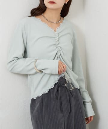 【店頭でも人気/追加決定!》ギャザーレースリブカーディガン