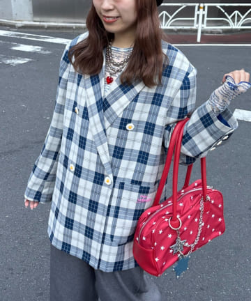 【HELLO.SANFRANCISCO/ハローサンフランシスコ】フラワー釦チェックオーバージャケット