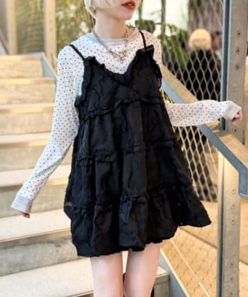 【3色展開】ドットティアードキャミワンピース