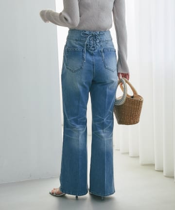 【追加オーダー決定!スタイルUPデニム】バックレースアップデニムフレアパンツ