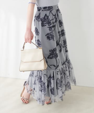 フラワープリントティアードスカート