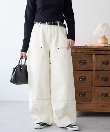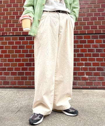 《セットアップ対応可》ネップダンガリーベルト付ワイドパンツ