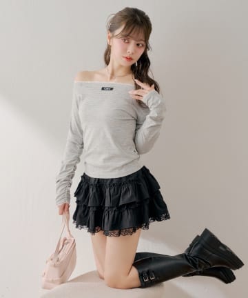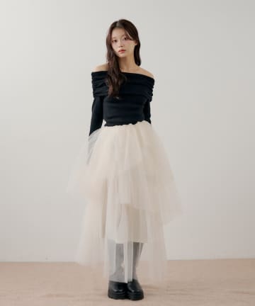 【SALON by Chico】オフショルニットティアードボリュームドッキングワンピース