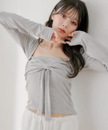 【SALON by Chico/セットアップ対応】太リボンペプラムジップスウェット