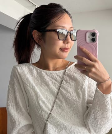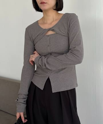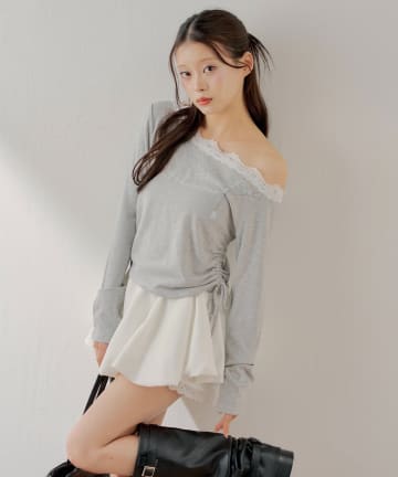 【SALON by Chico】ドットチュールデザインドッキングペプラムロンT