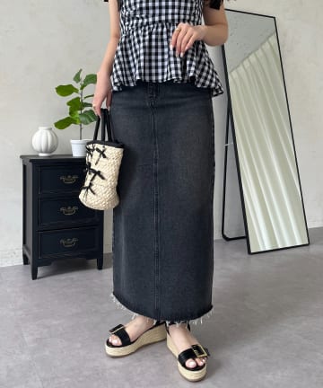 【2サイズ展開/低身長サイズ】ポーチデニムロングスカート