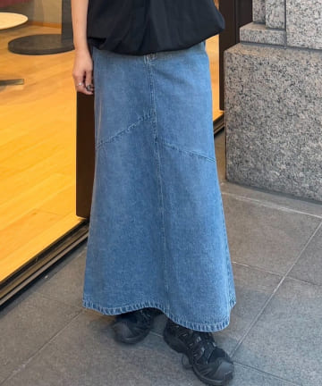 【S.Mサイズ展開】B デニムパッチワークロングスカート