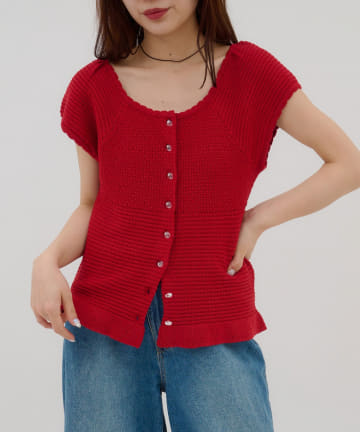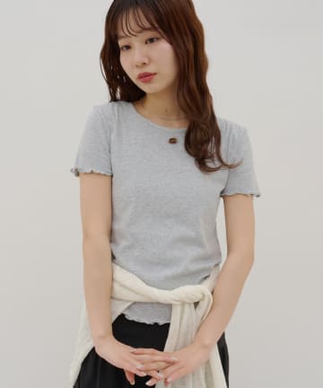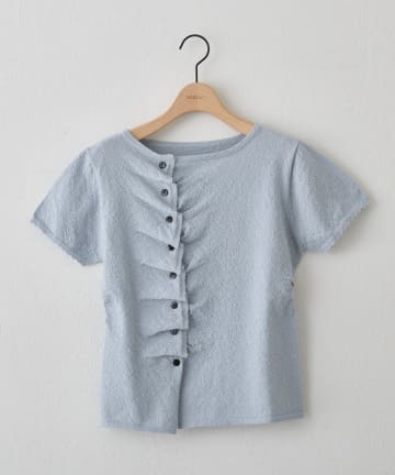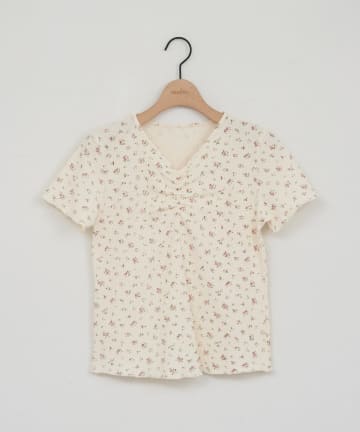 【umm.】胸ギャザー花柄ワッフル半袖トップス