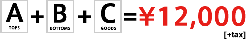指定のトップスとボトム、雑貨を合わせてご購入いただくと特別価格でご購入いただけます。