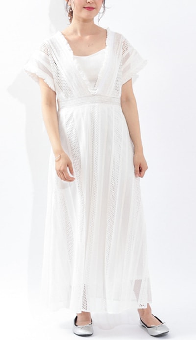 上品で柔らかく、涼やかなベージュ・ホワイトのワントーンコーデ。