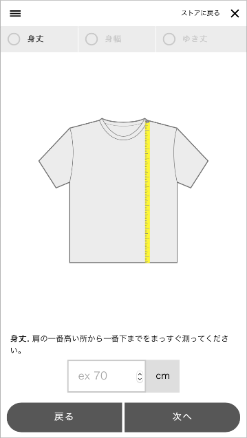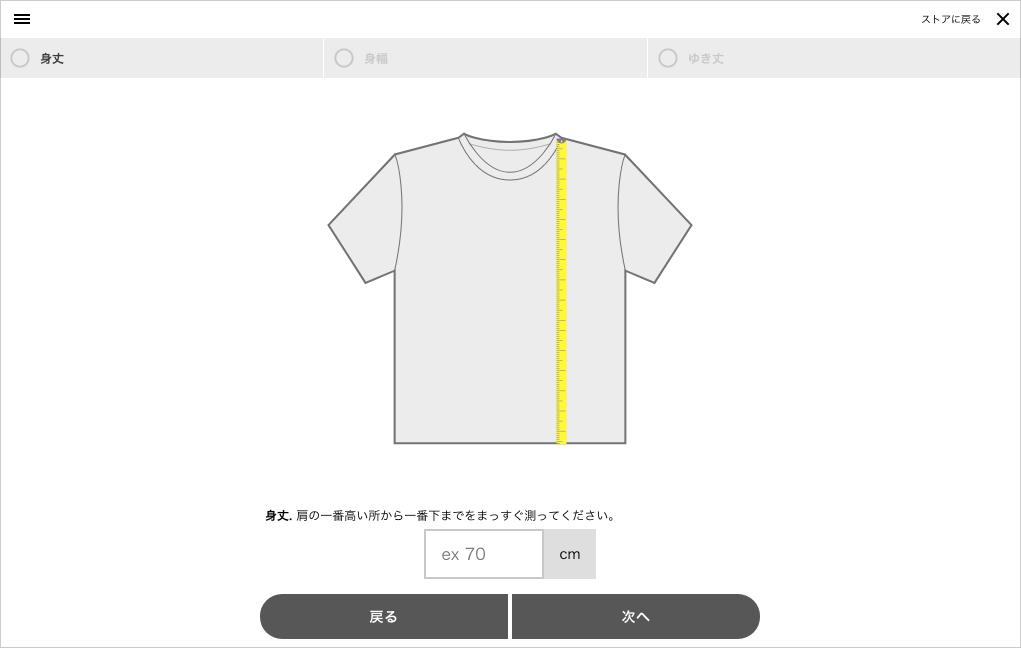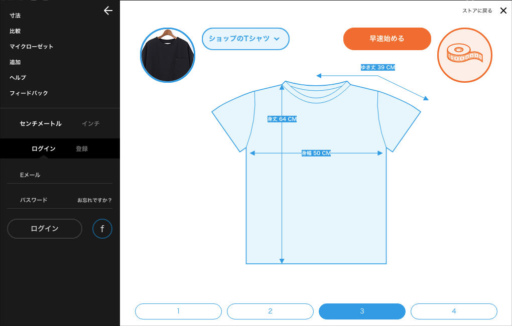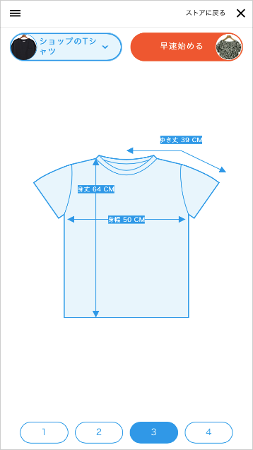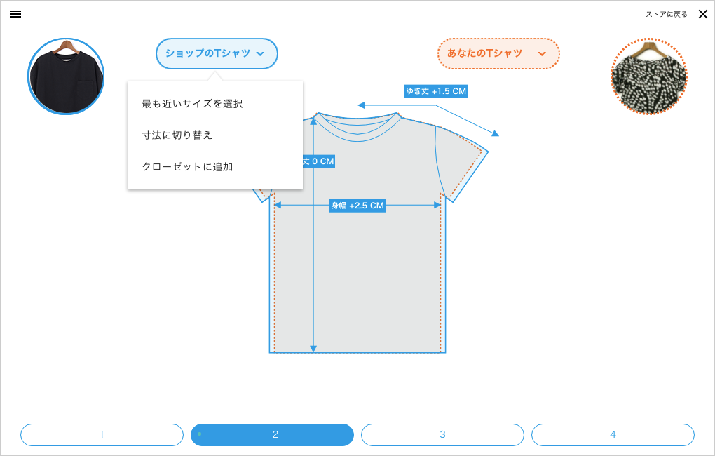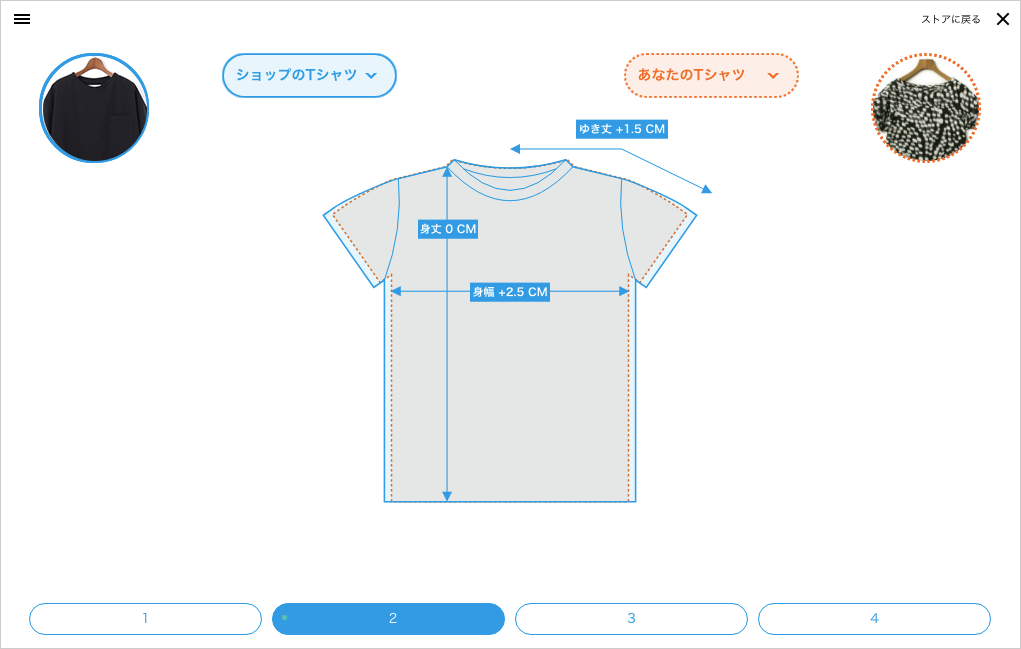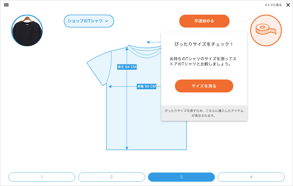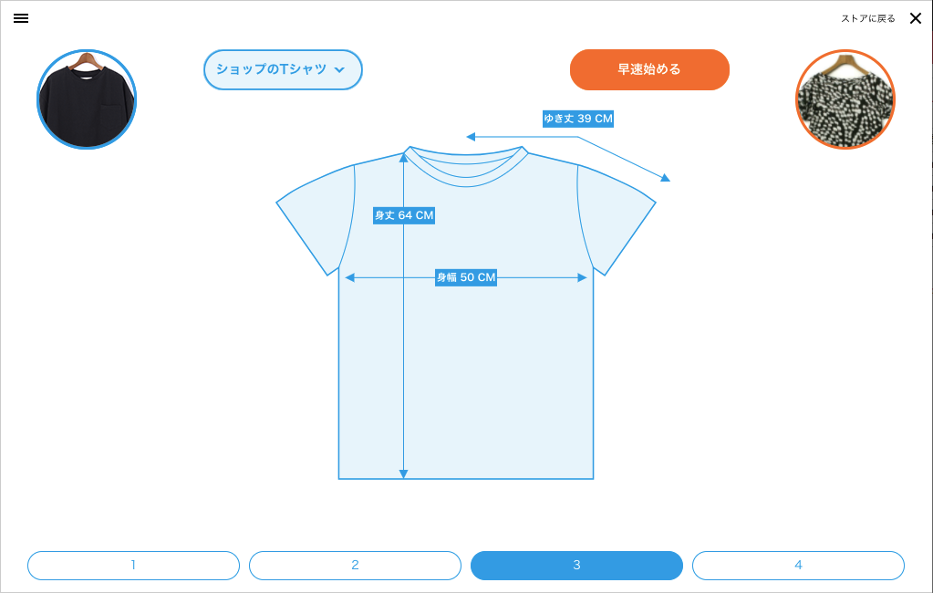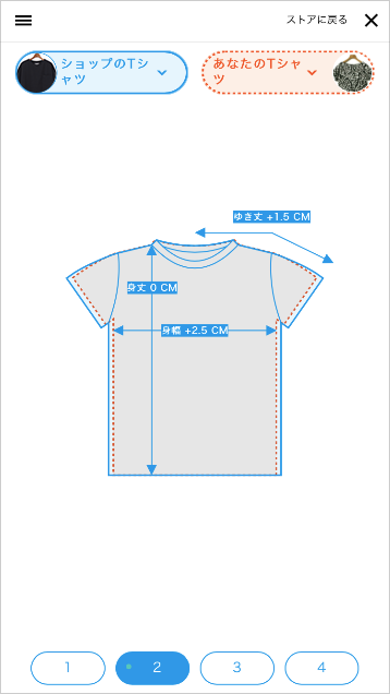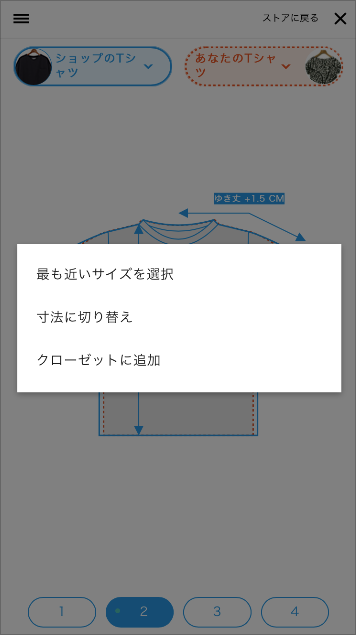3. ストアのアイテムと、ご自身の服のサイズを比較
