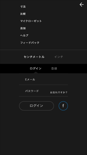 Virtusizeアカウントを登録すると、クローゼットの中に登録されている内容を他のパソコンやスマートフォンからも呼び出せます。画面左上のメニューバーからアカウントの登録が可能です。登録には、Facebookアカウントかメールアドレスをご利用ください。
