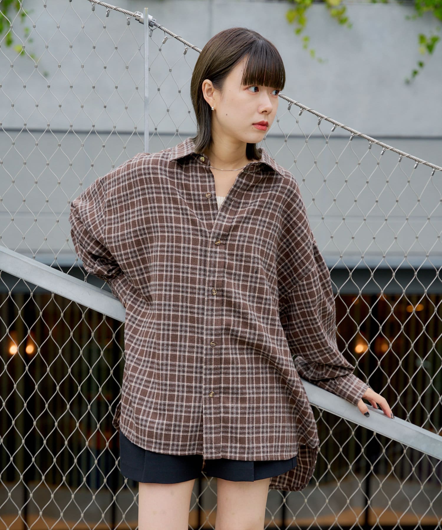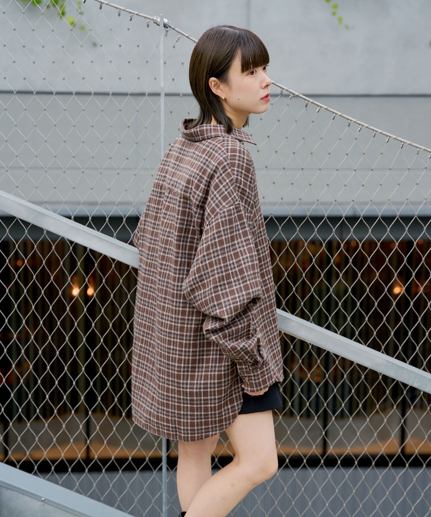 【WHIMSIC】フランネルチェックレギュラーカラーシャツ
