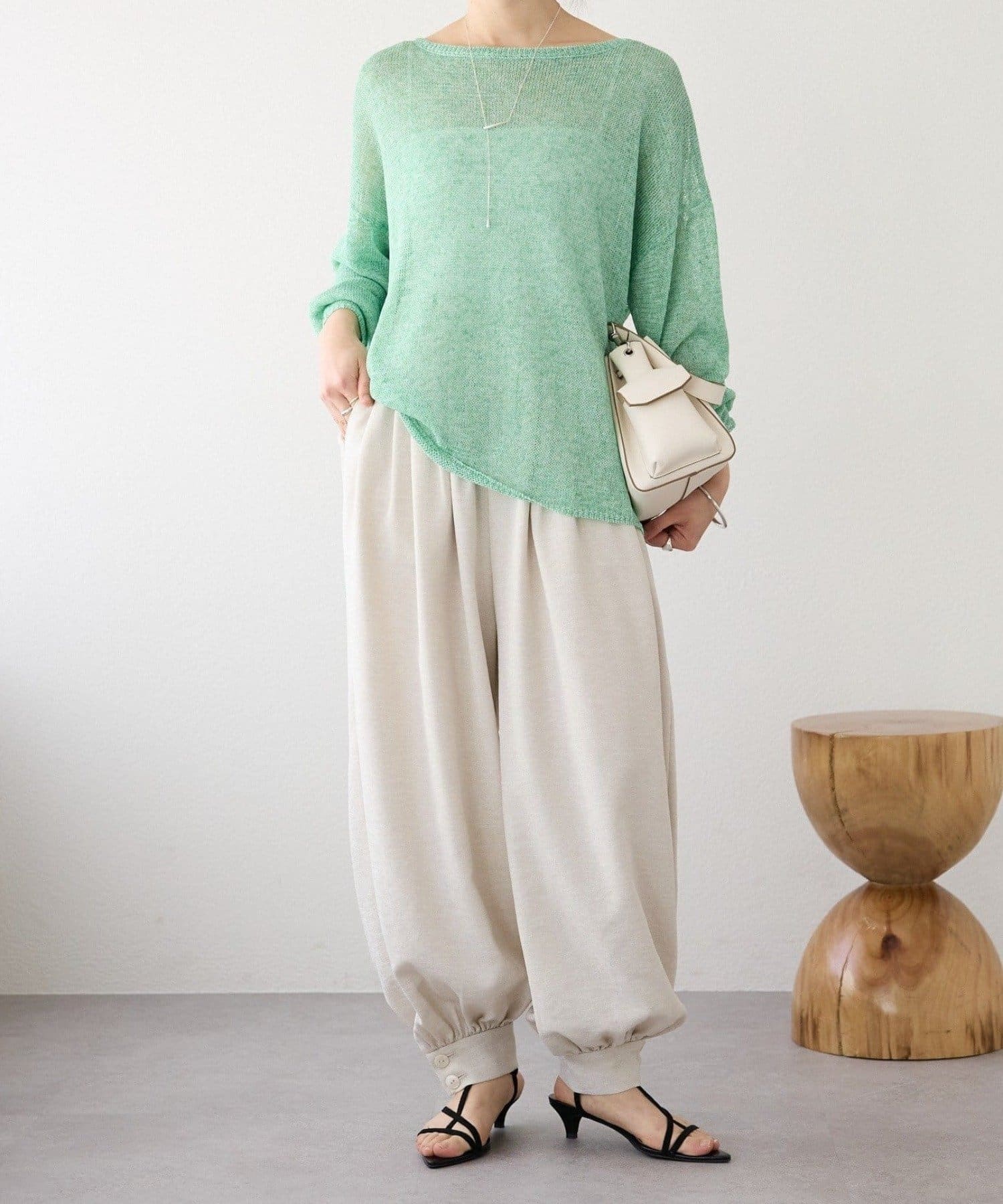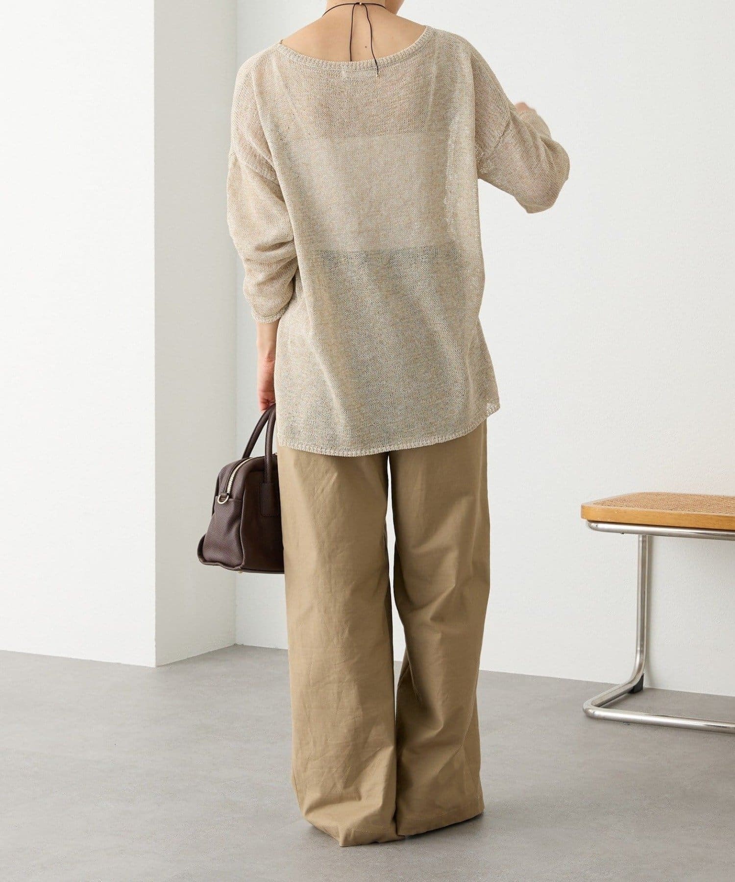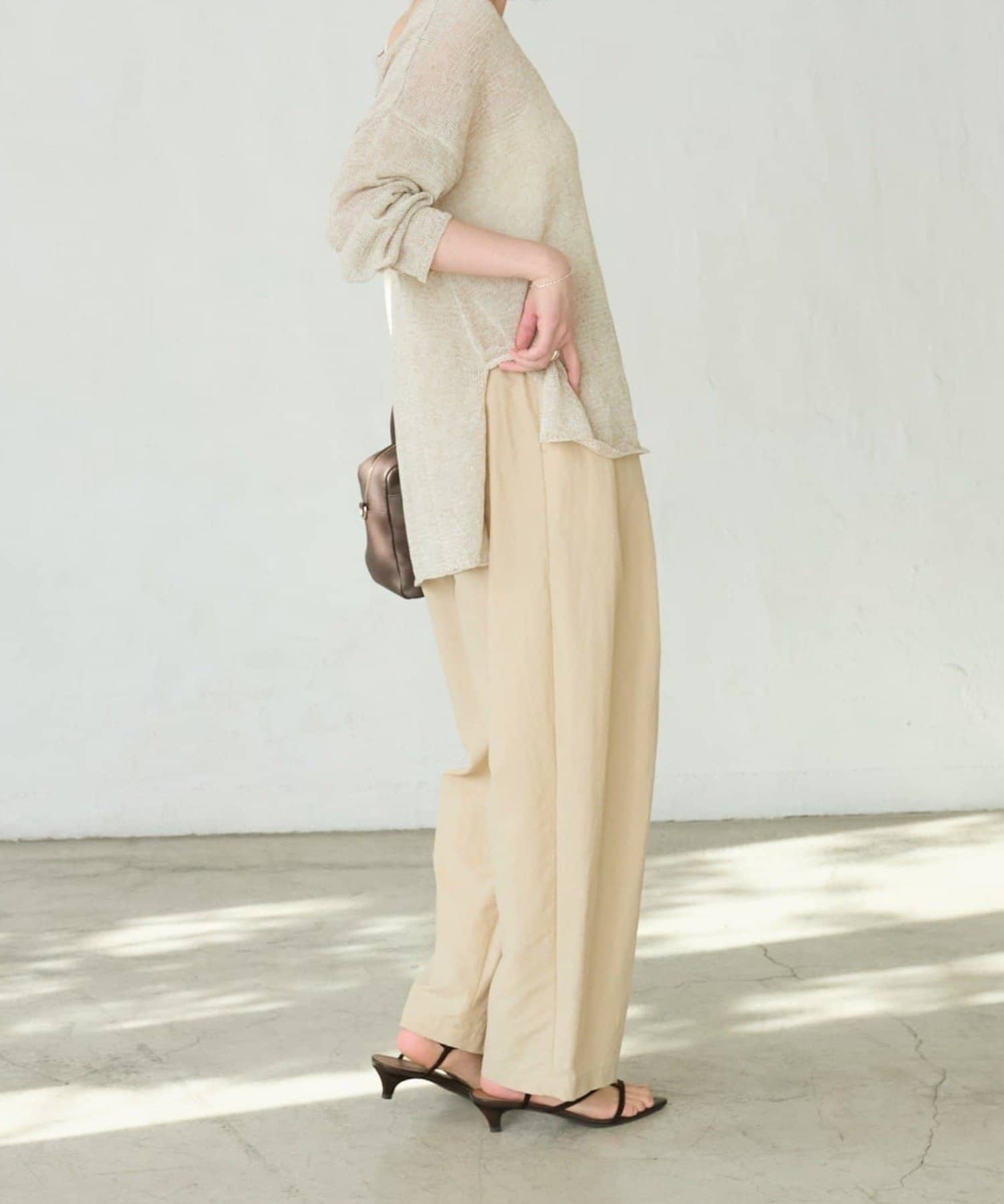 リネンのナチュラルさを活かした風合いと、肌離れが良く清涼感のある着用感が特徴のルーズニット。