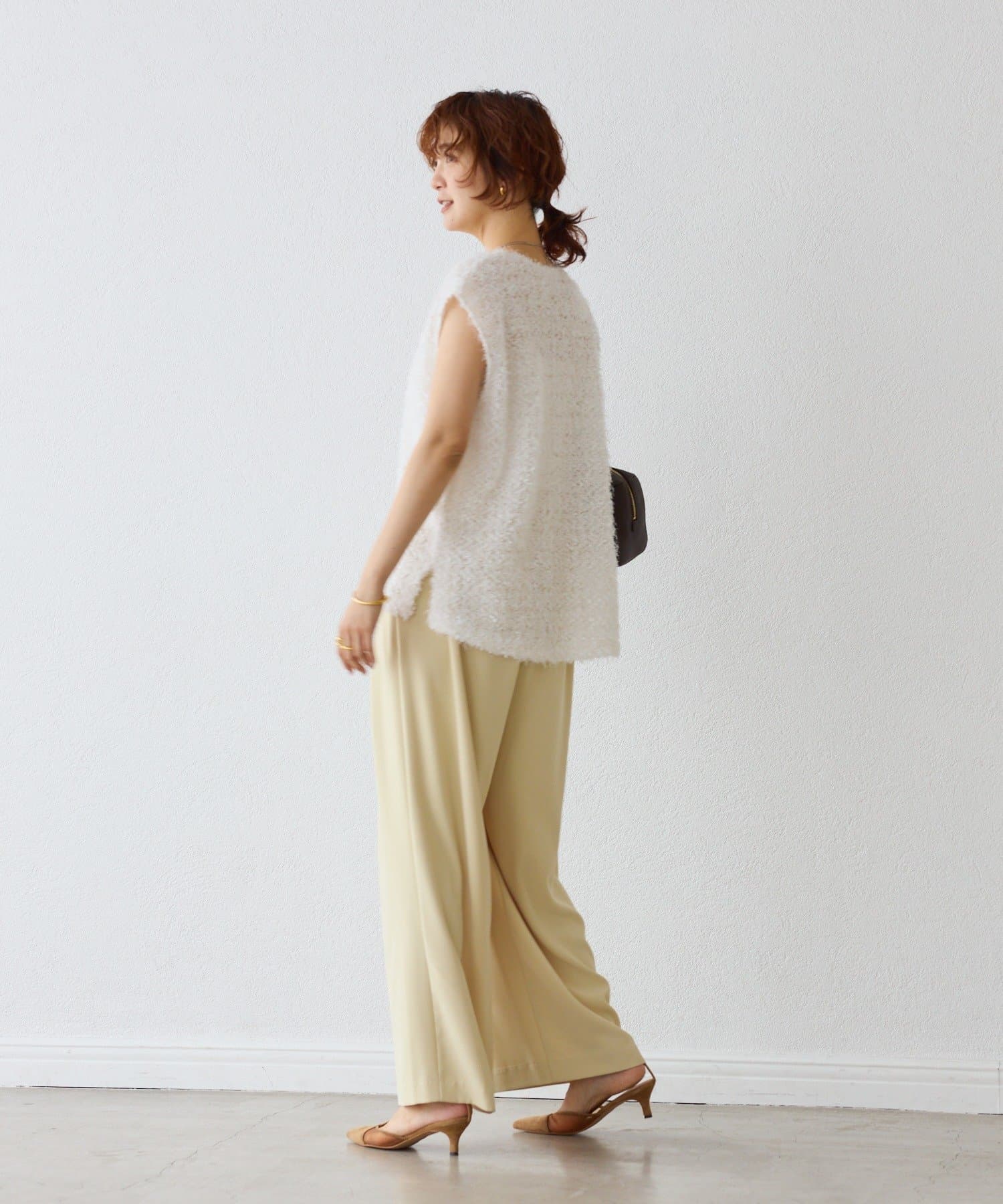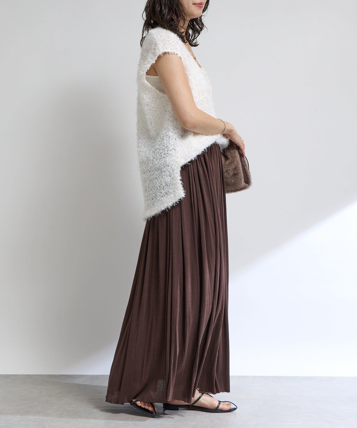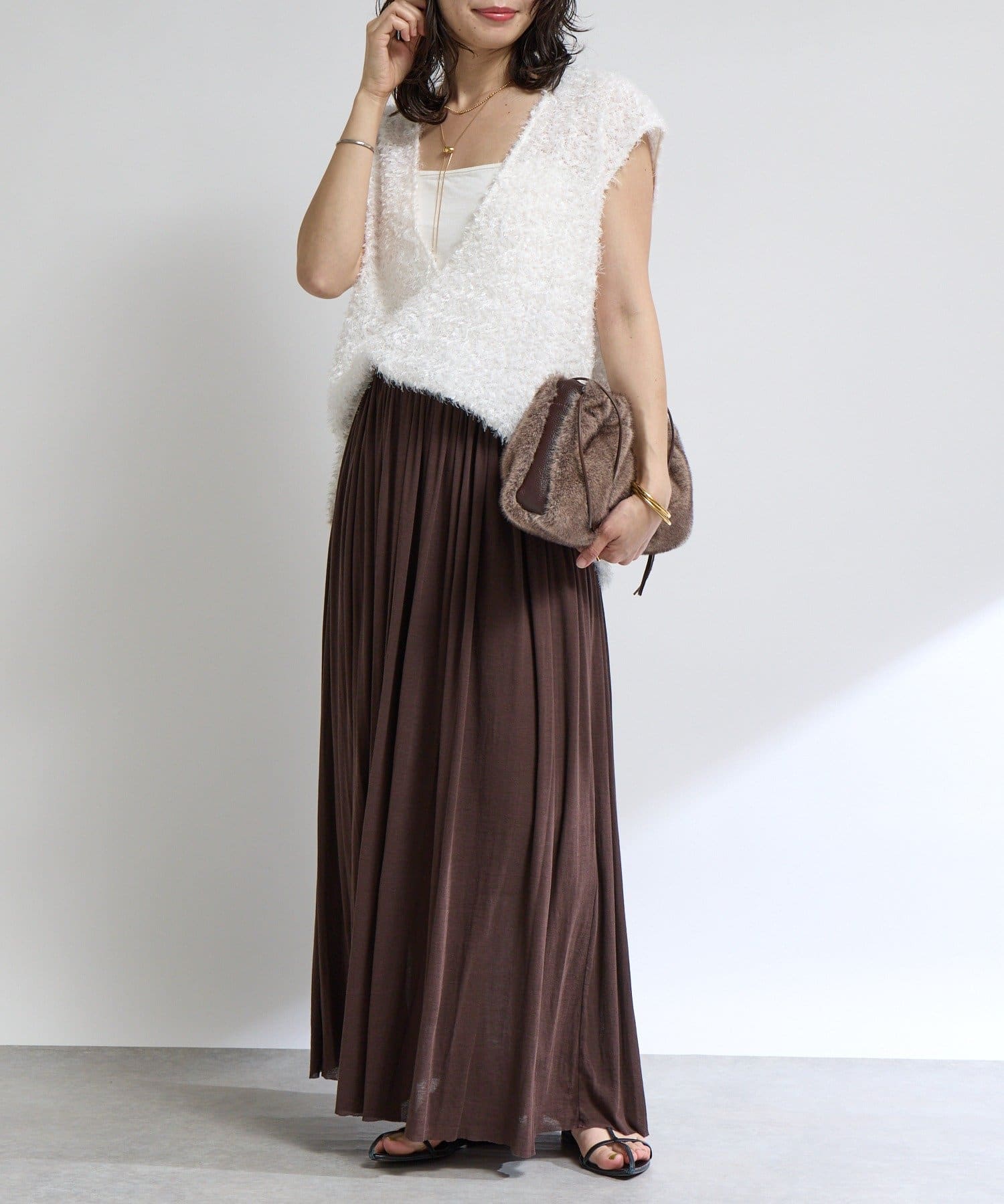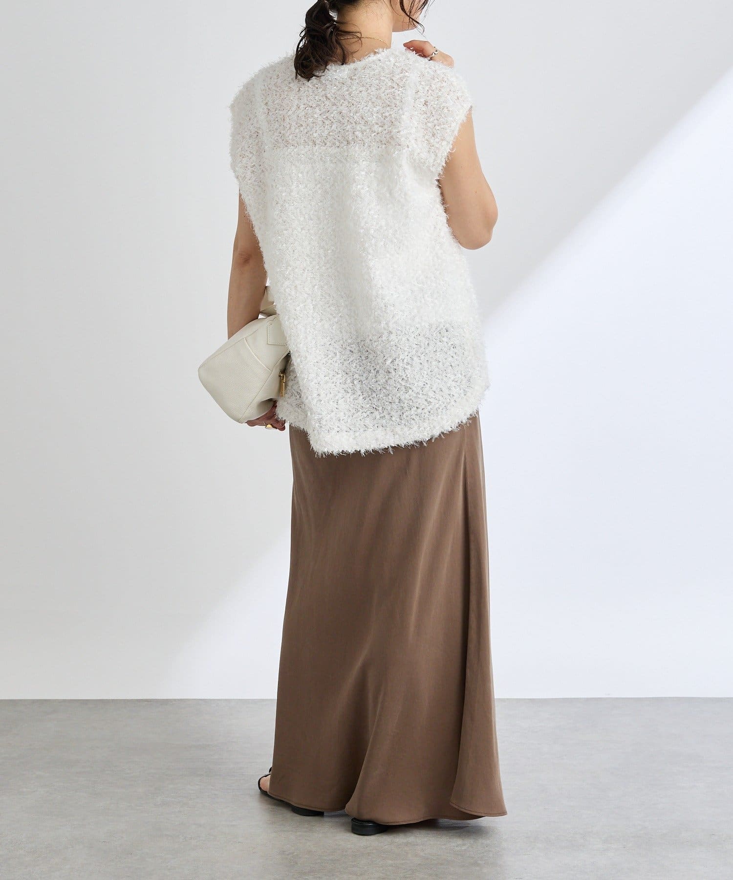 ソフトで華やかな表情をもつ素材が、着るだけで主役顔になる一枚です。