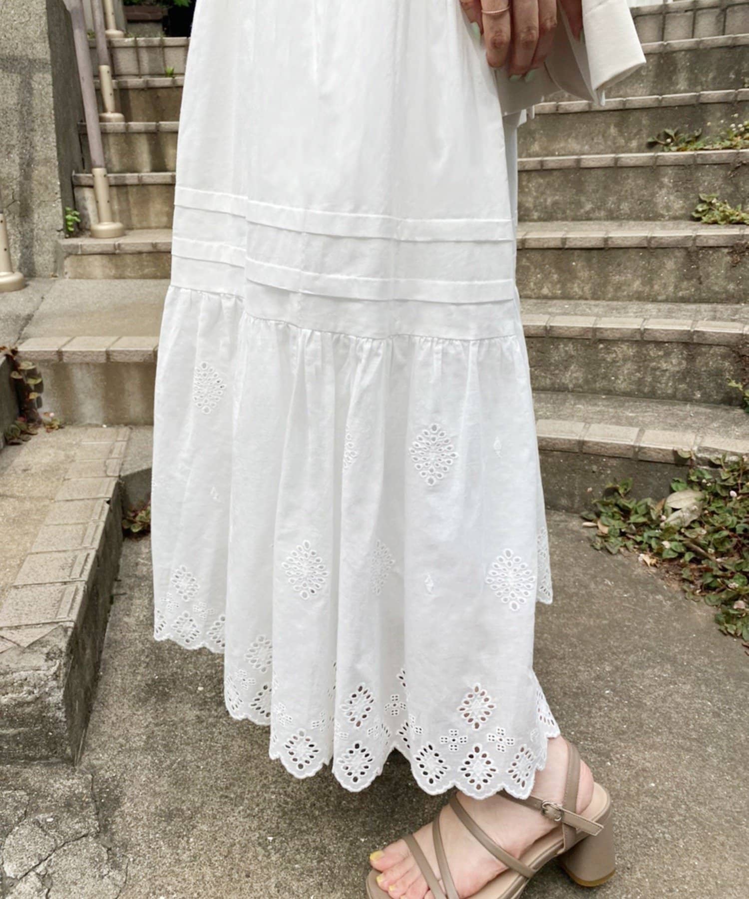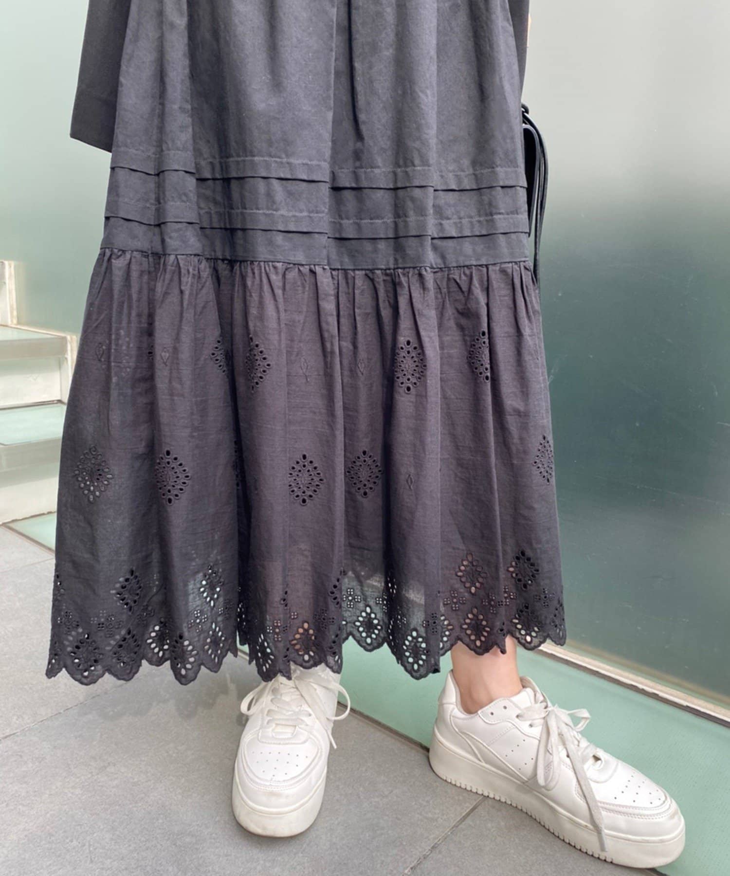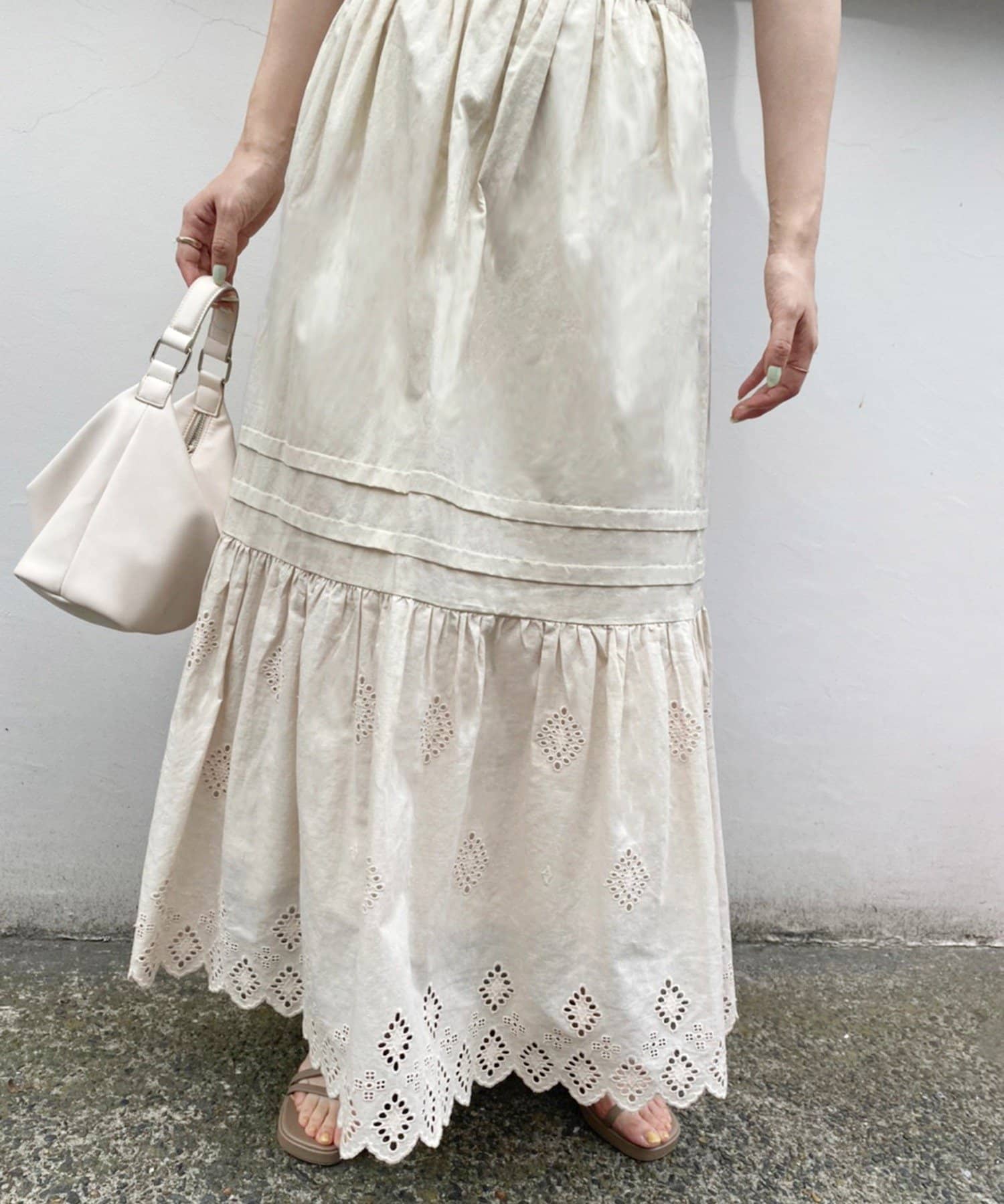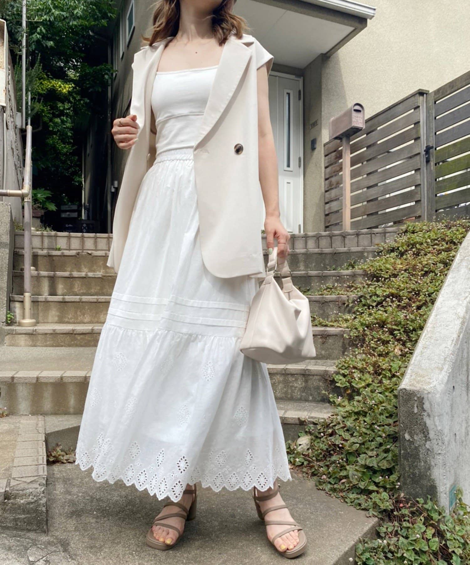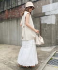 裾は大きめなスカラレースを使用し、ナチュラルでフェミニンな印象に。