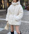 お尻回りまで隠れる少し長めのデザインで、暖かさはもちろん大人っぽい印象にも。