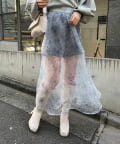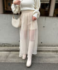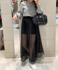 シアー感あるスカートには緩めなニット合わせがオススメ。