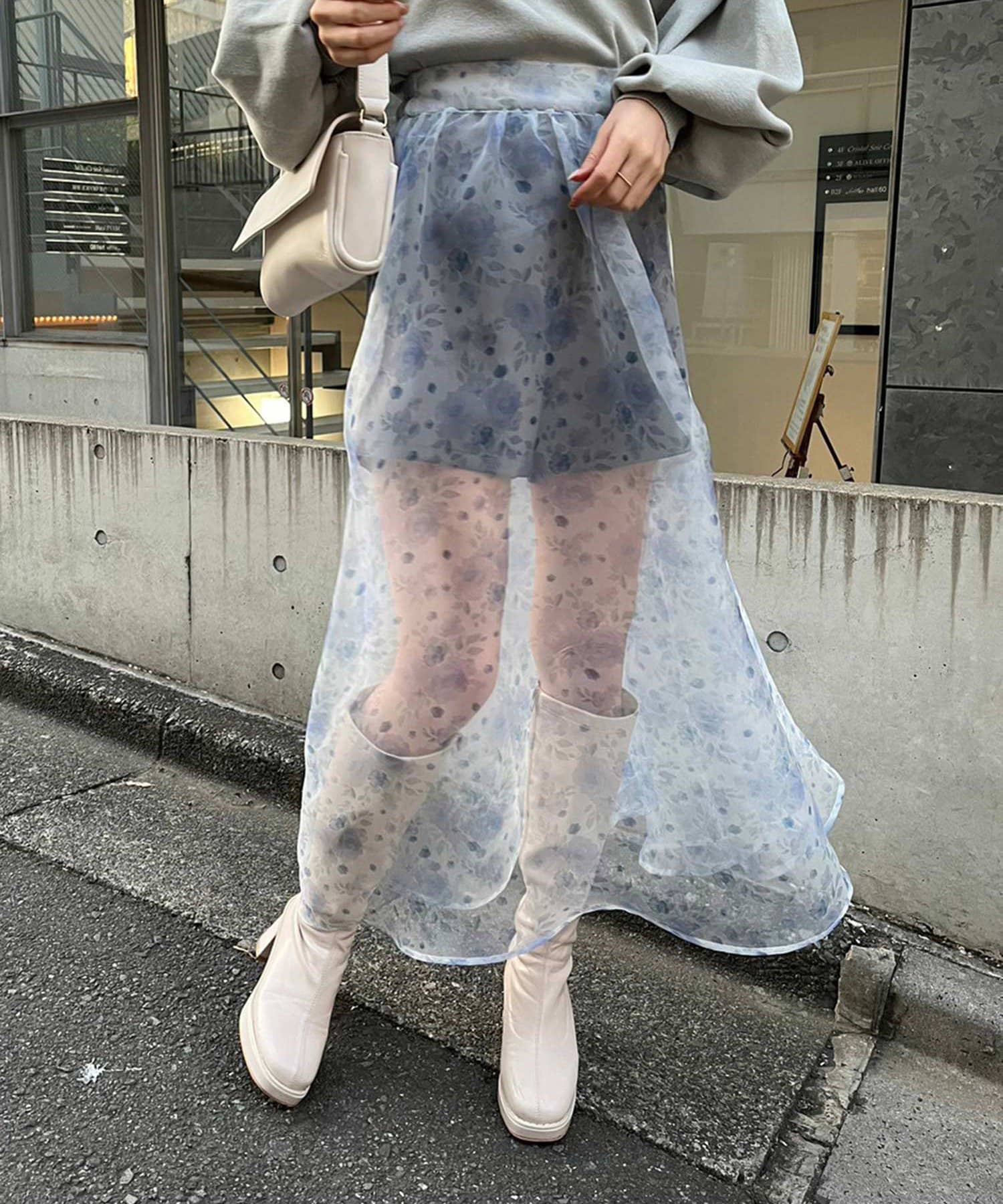 透け感があるスカートなので、足元はブーツ合わせが◎