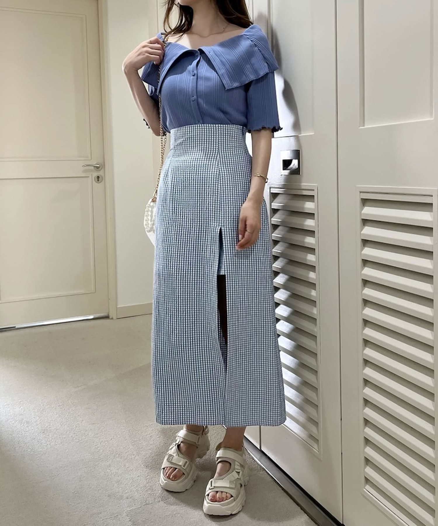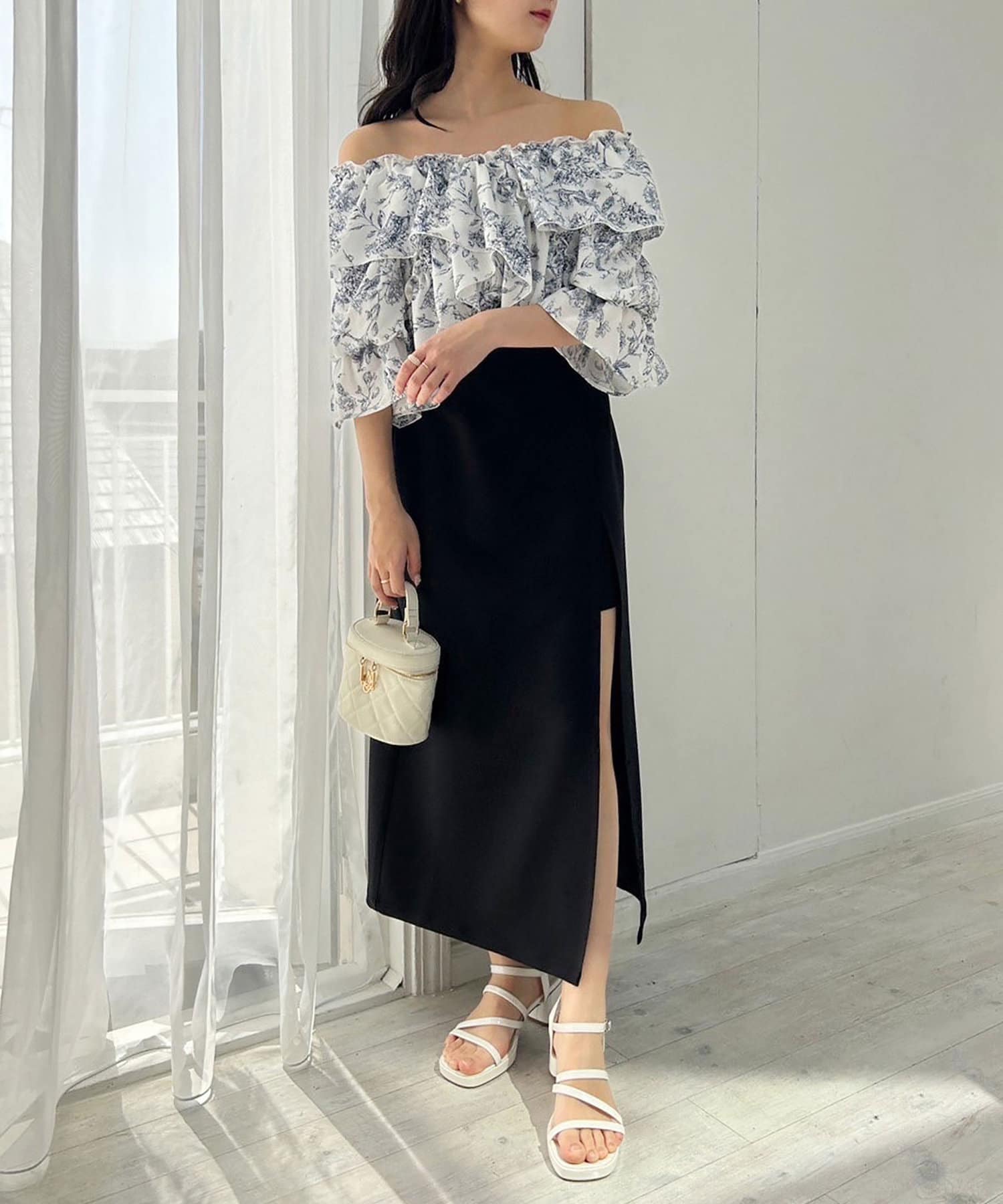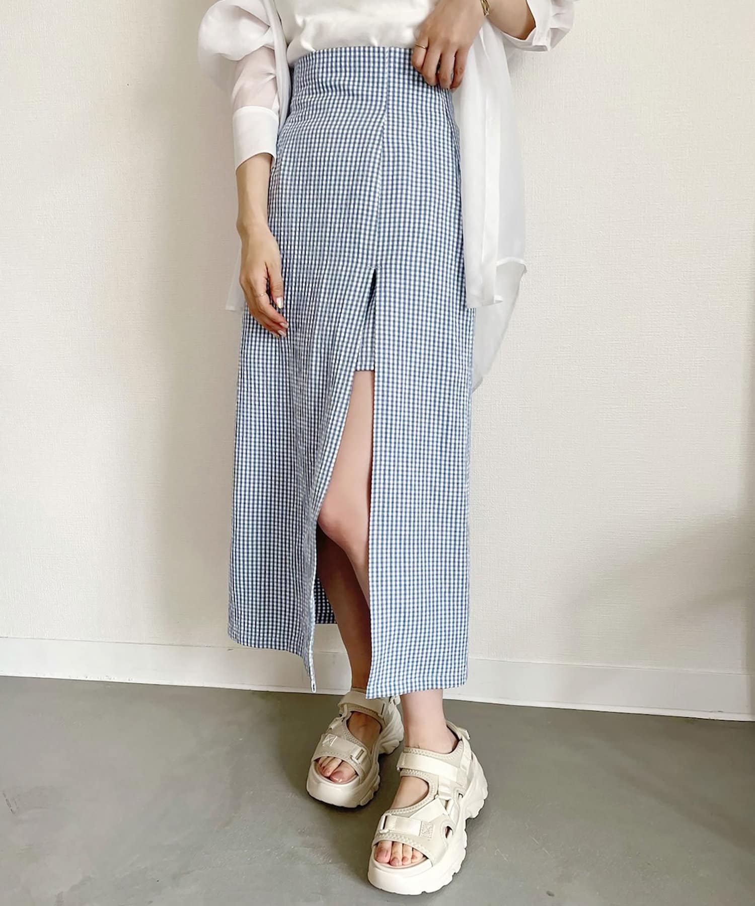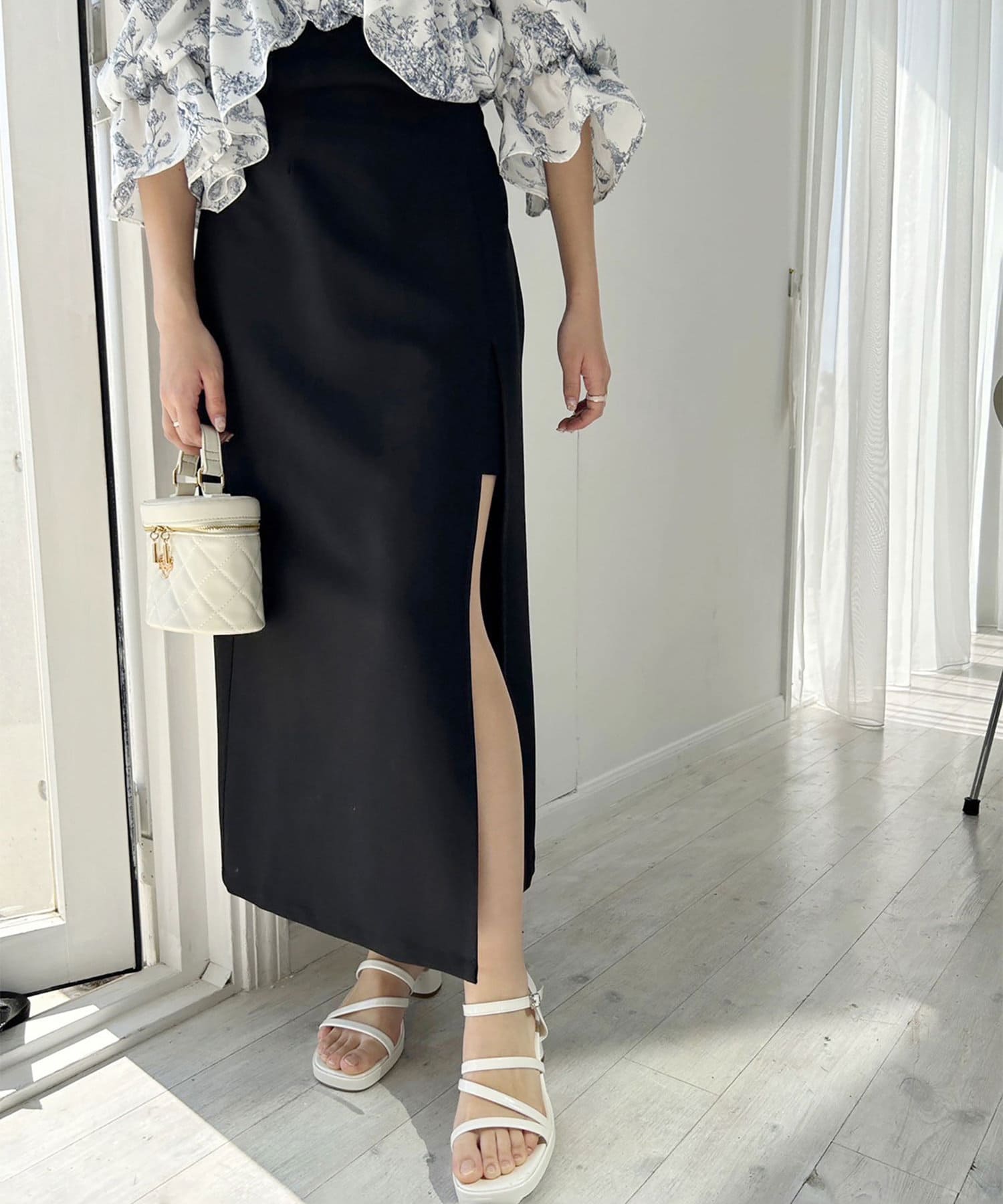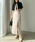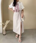 フロントに深いスリットを施し、足捌きもしやすく抜け感と女性らしさをプラス。