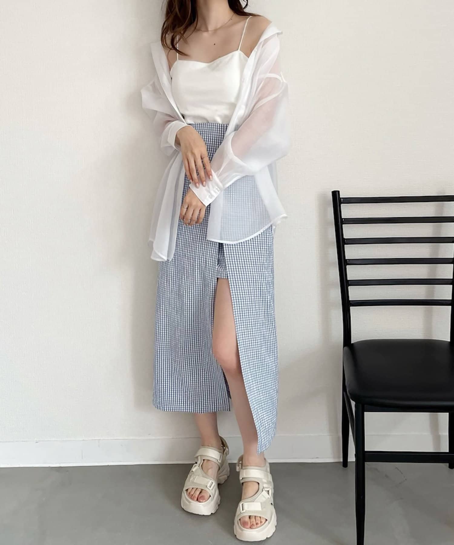 シアシャツを羽織るコーデも大人っぽくなりオススメです。