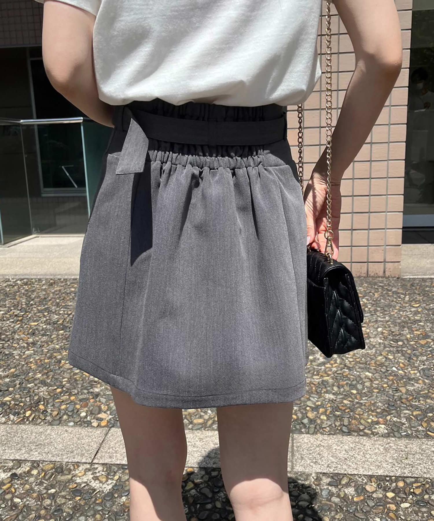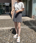 前からはスカートに見えますがパンツ仕様なのでミニ丈でも安心して着ていただけます。