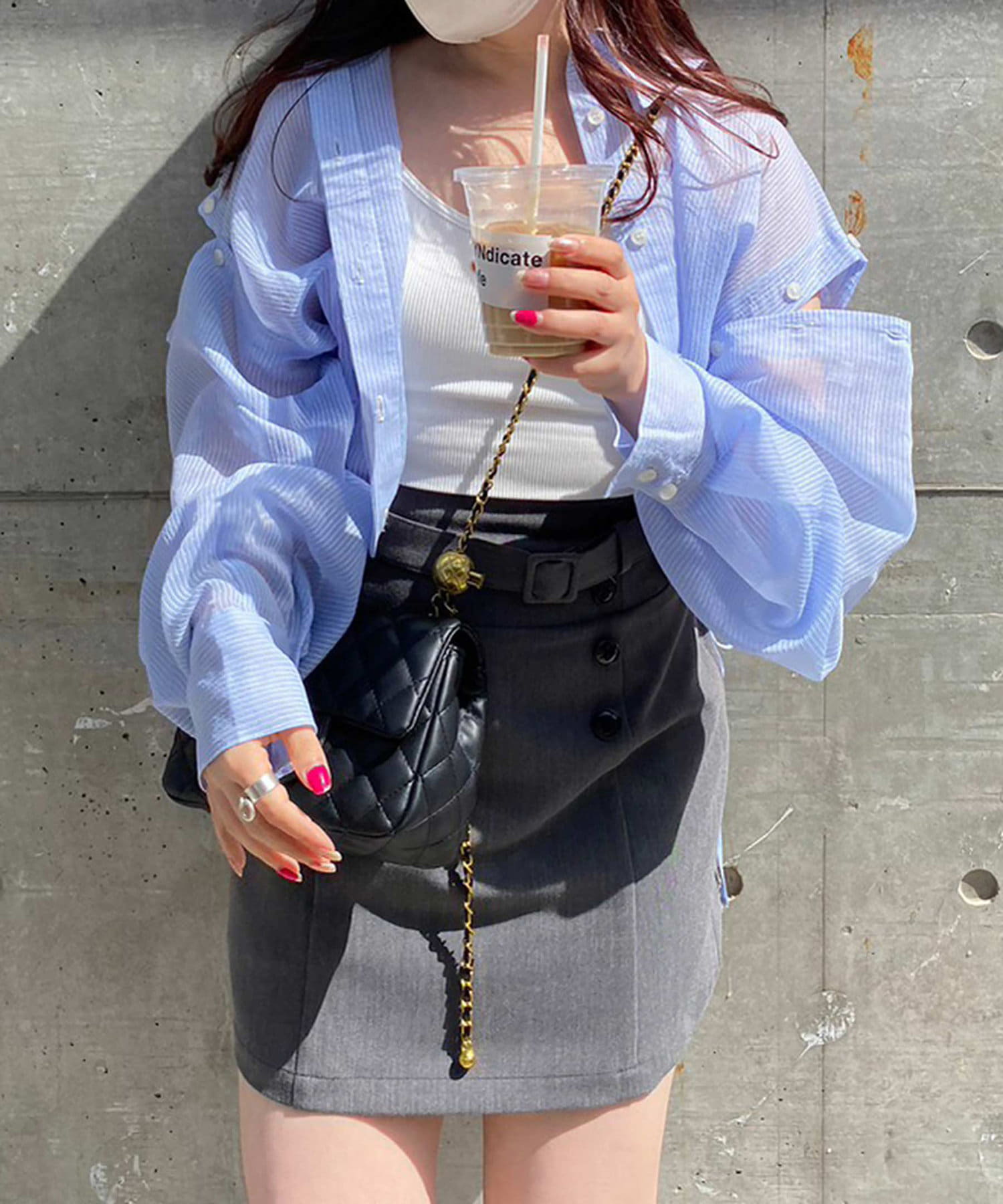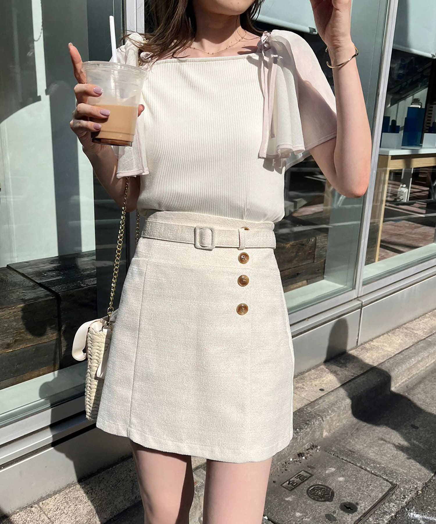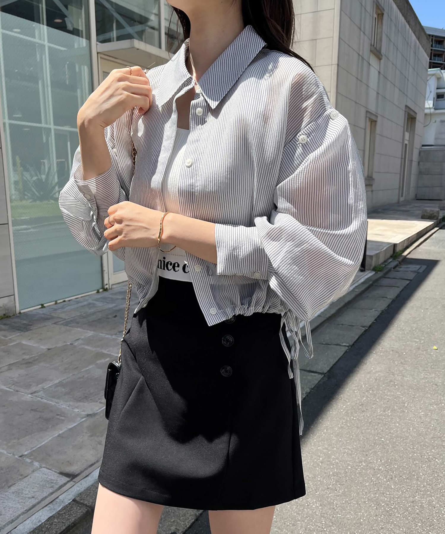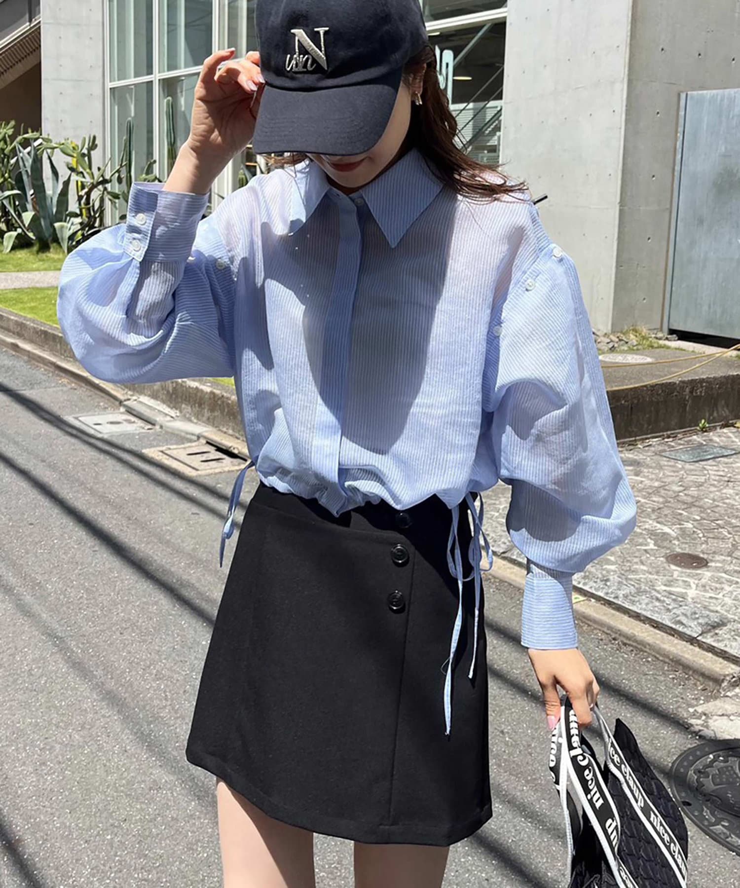 コンパクトなバッグと合わせるとよりこなれたスタイリングになります。