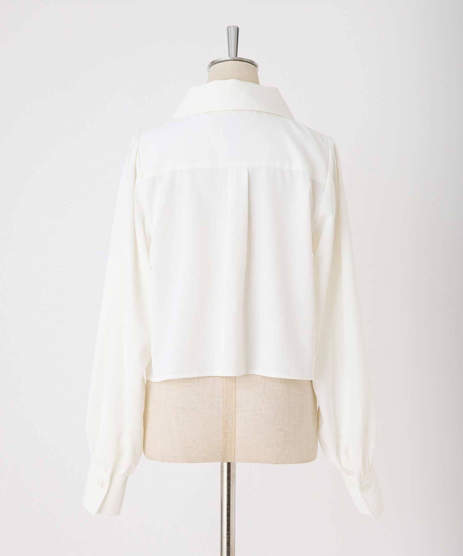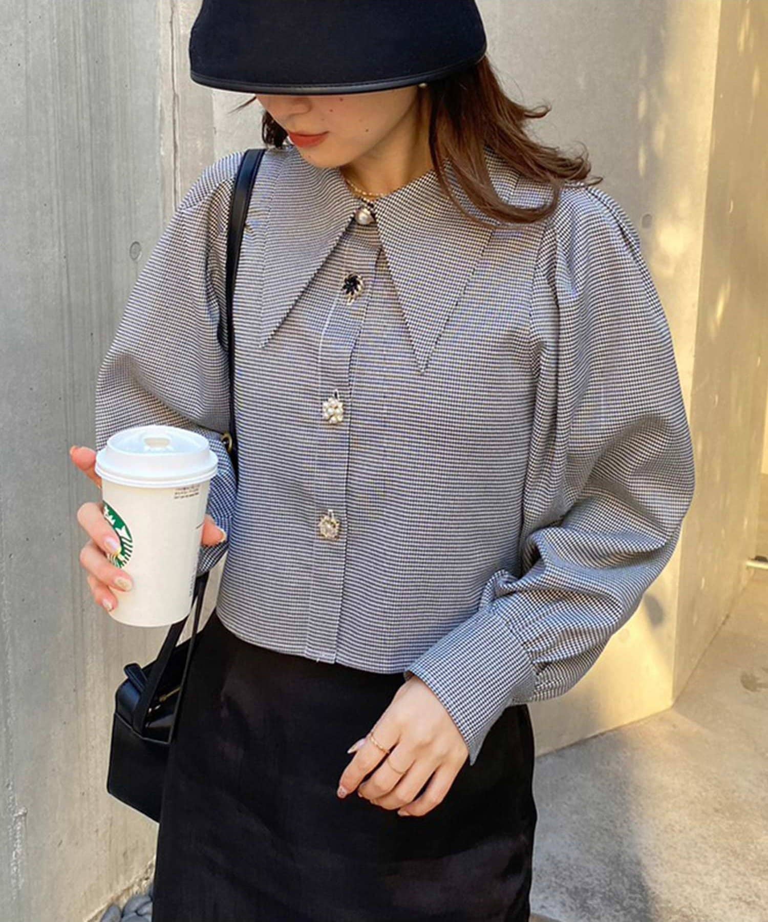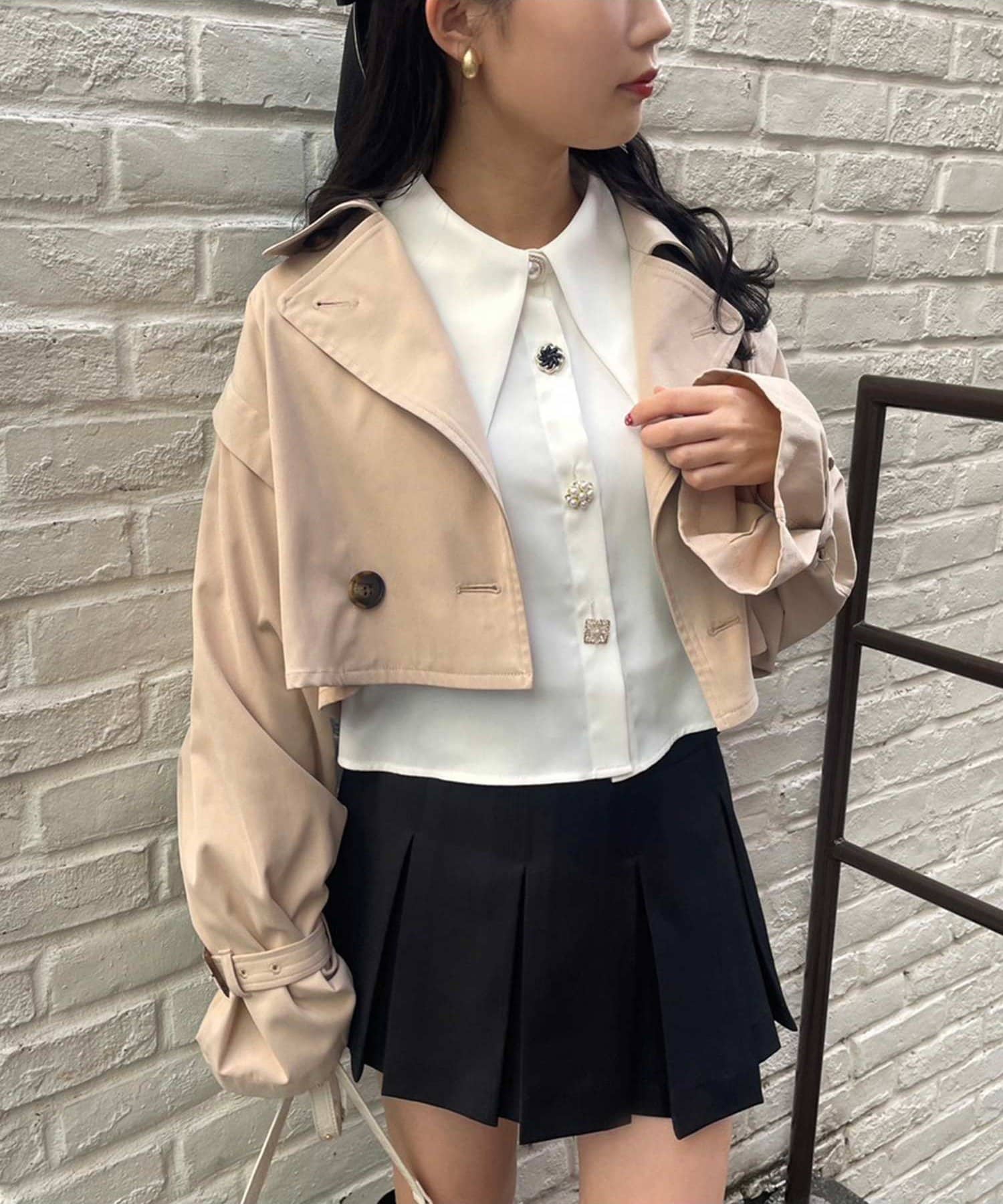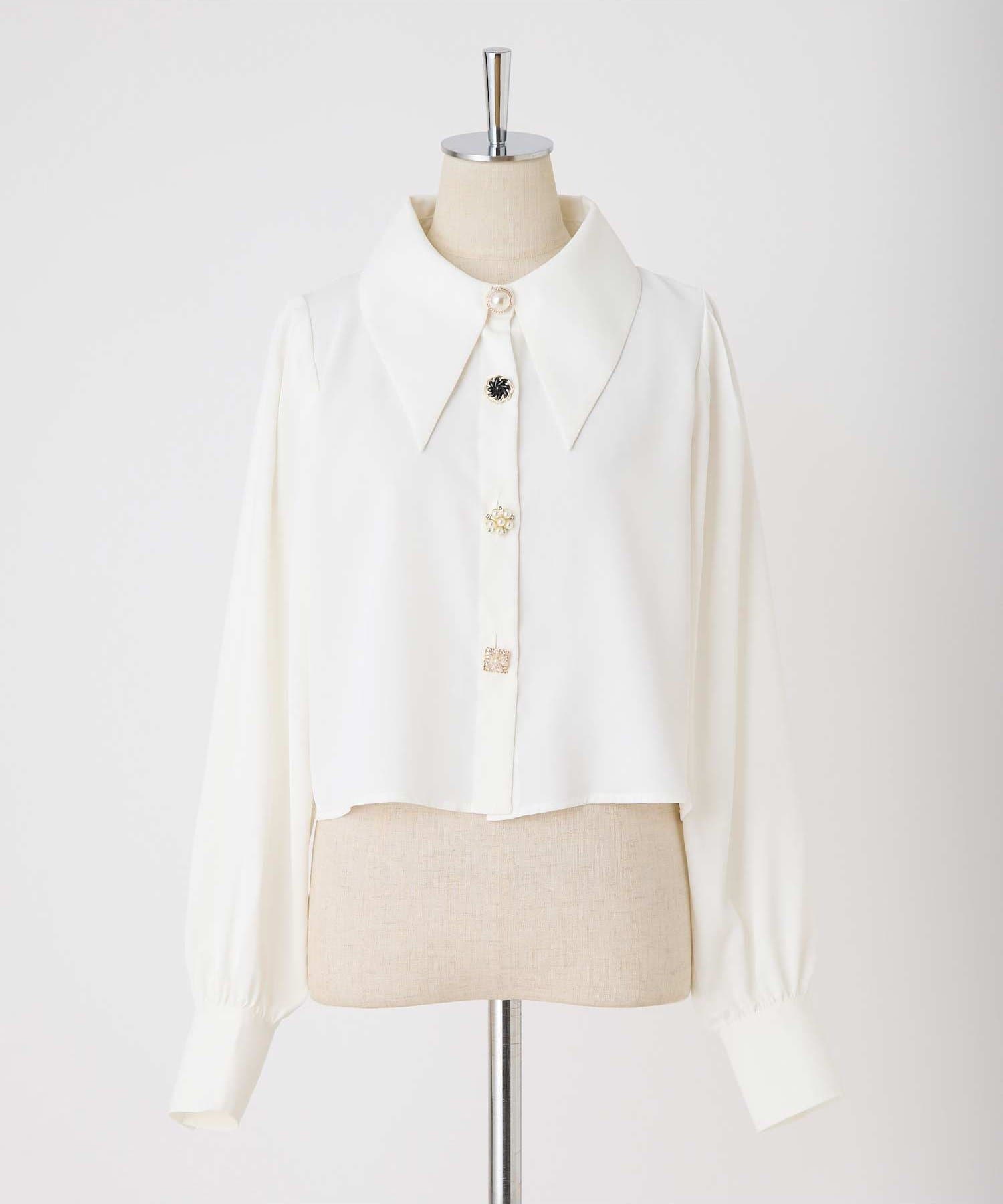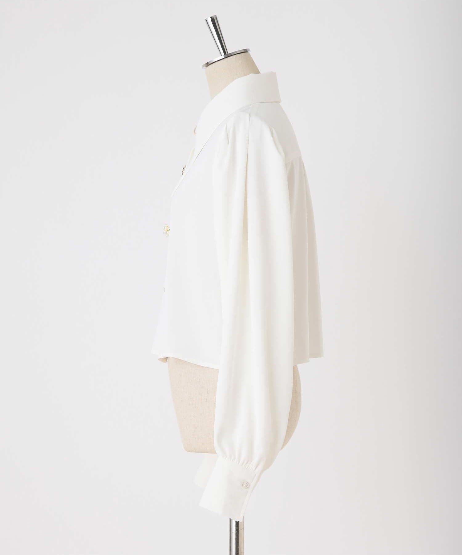着丈が短いクロップド丈になっているのでインせずに着て頂くことができ、ボタンがより映えます。