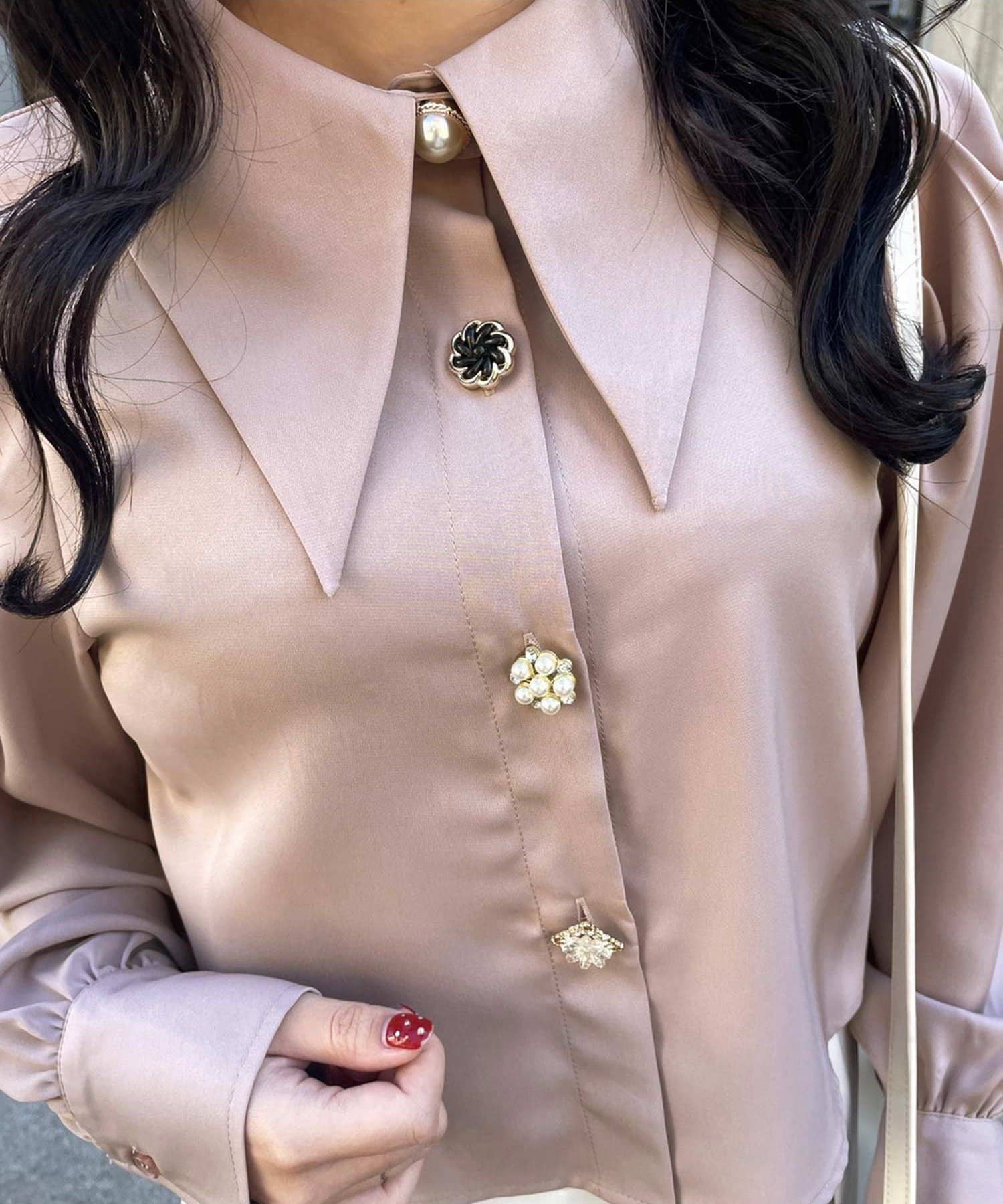 ボタンのデザインがアソートになった特別感のあるブラウス。