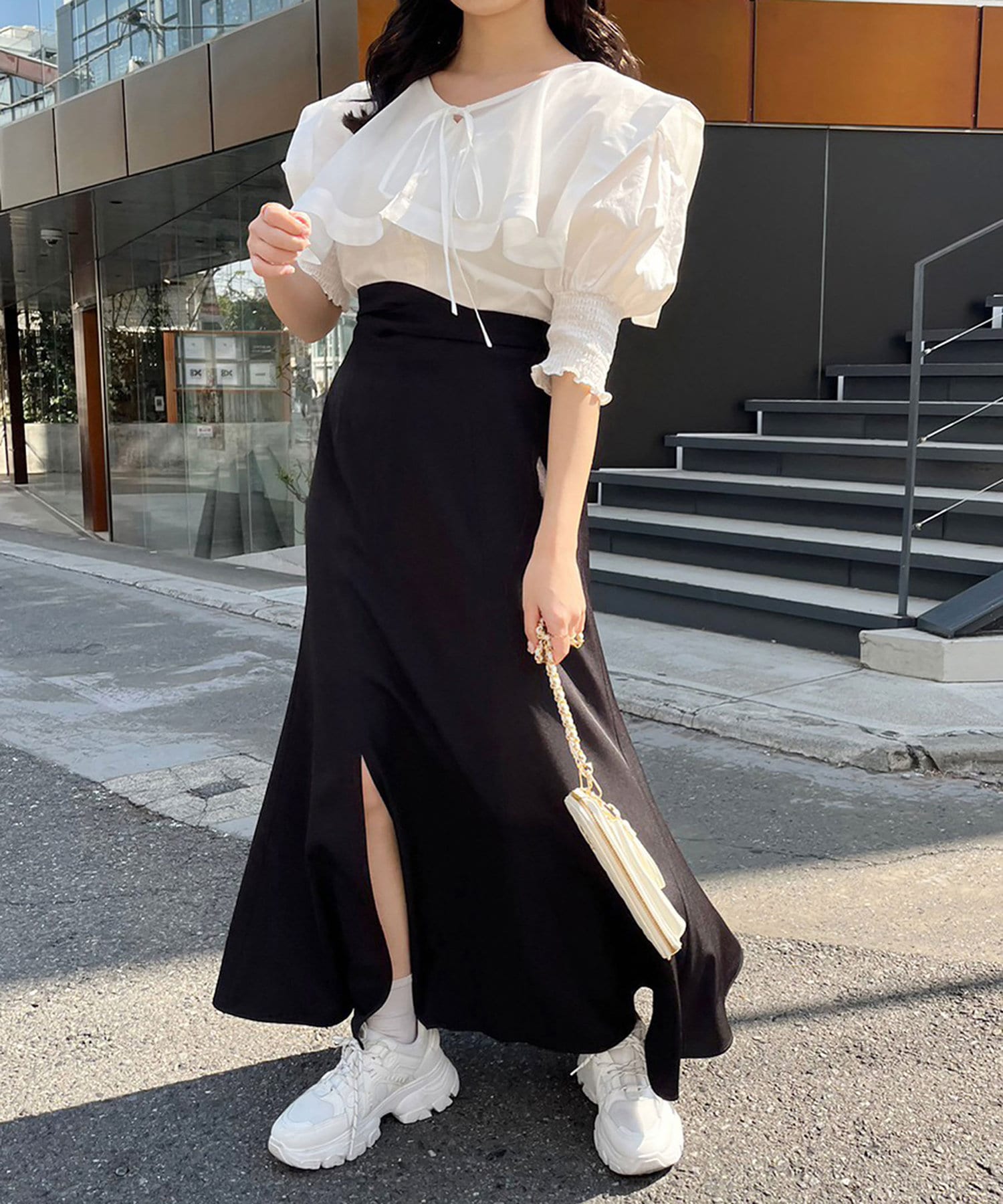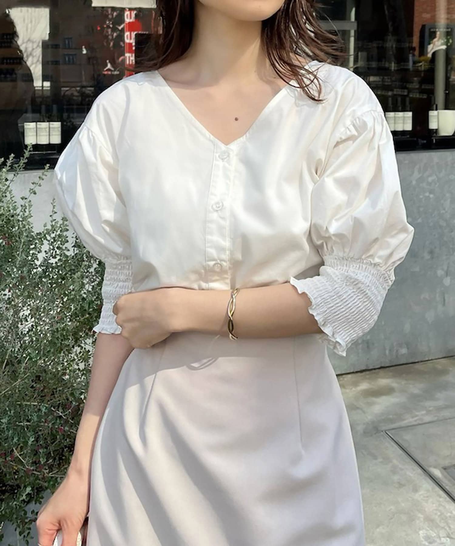 程よいボリュームのお袖は華奢見え効果も◎