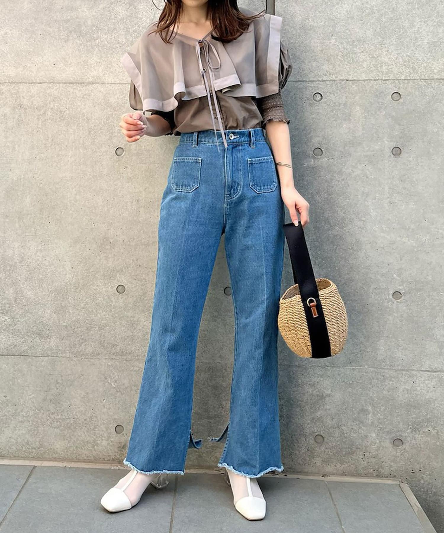 スラックスパンツやデニムパンツで大人可愛いスタイリングもオススメです。
