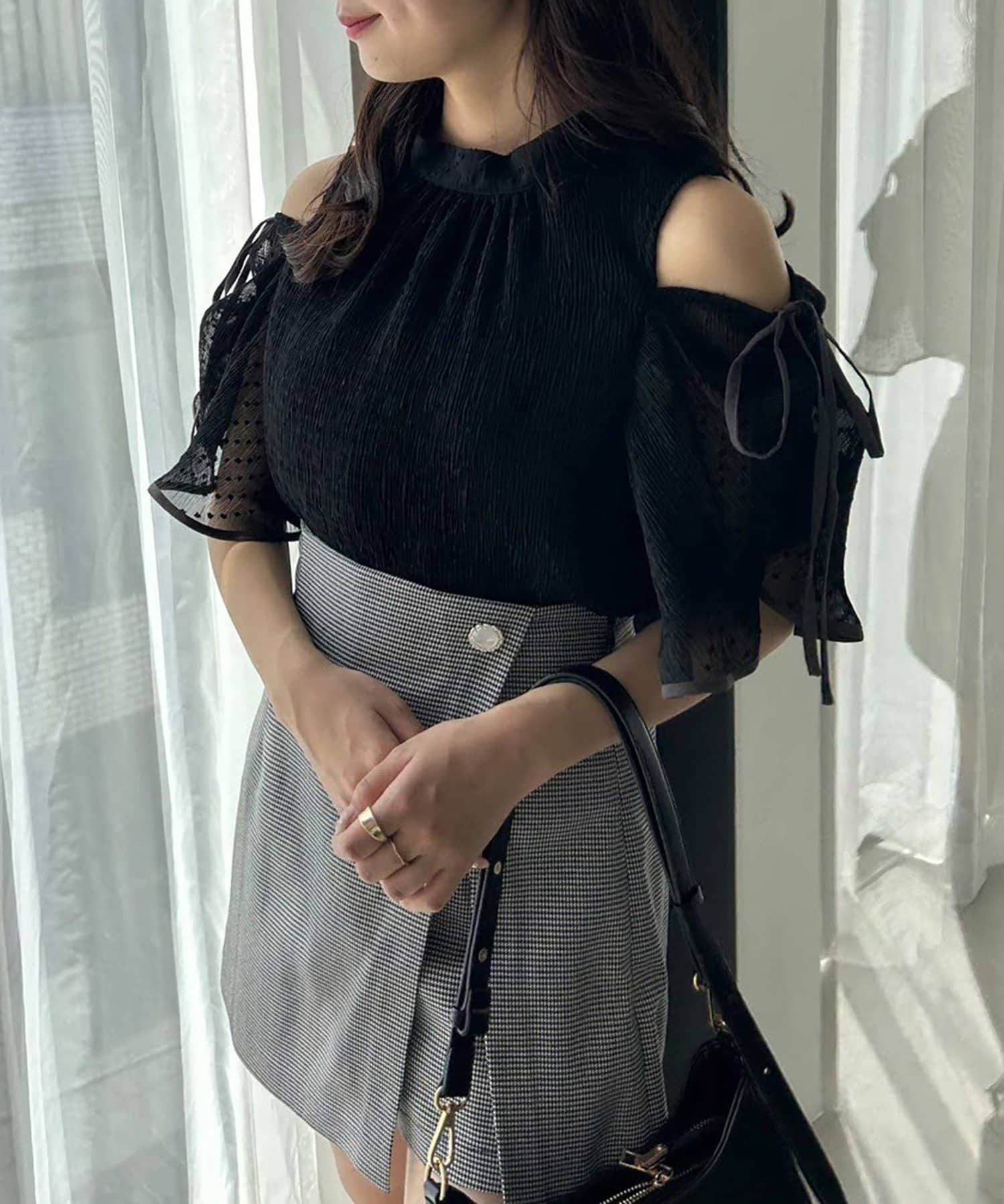 カットアウトのデザインブラウスで