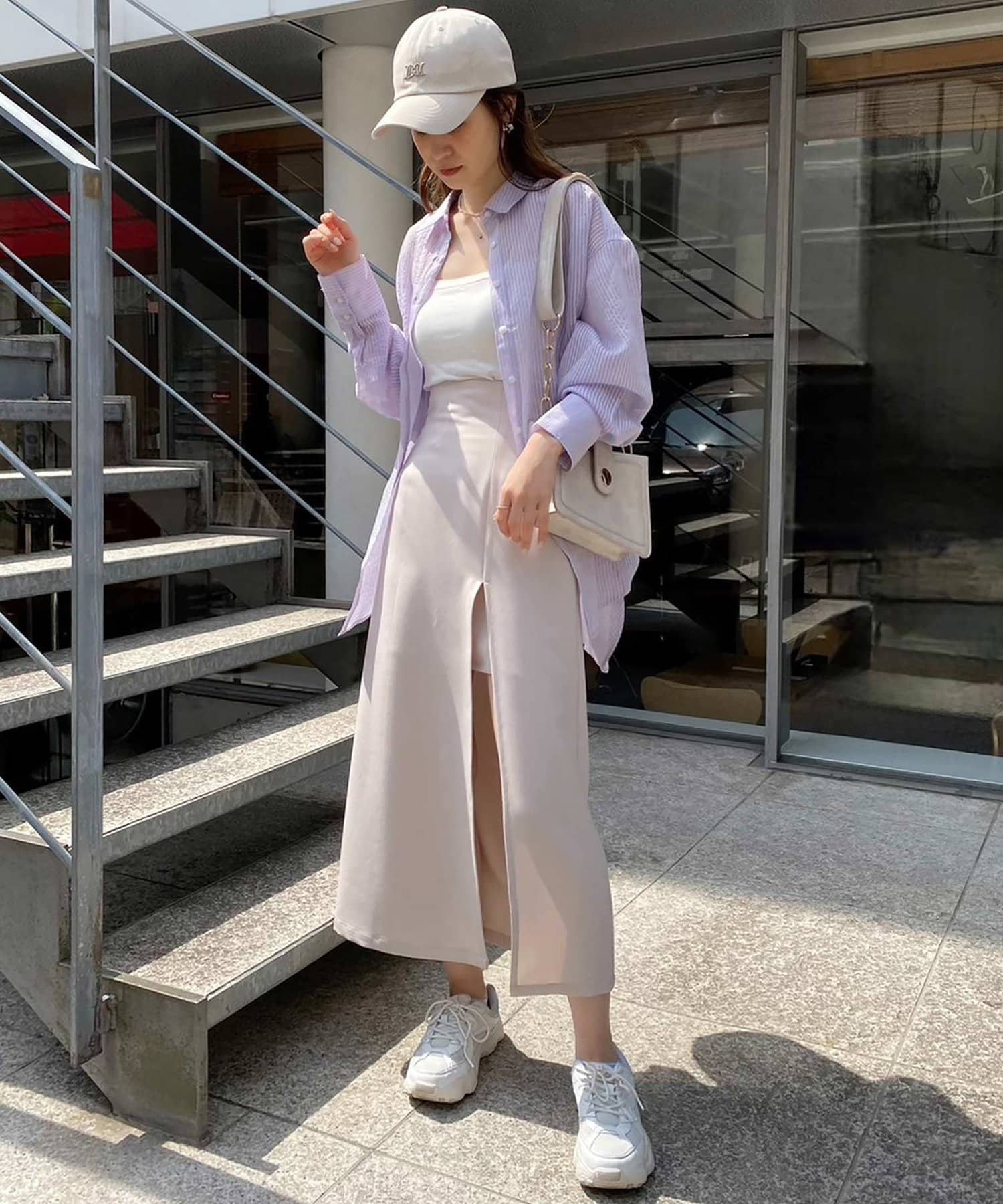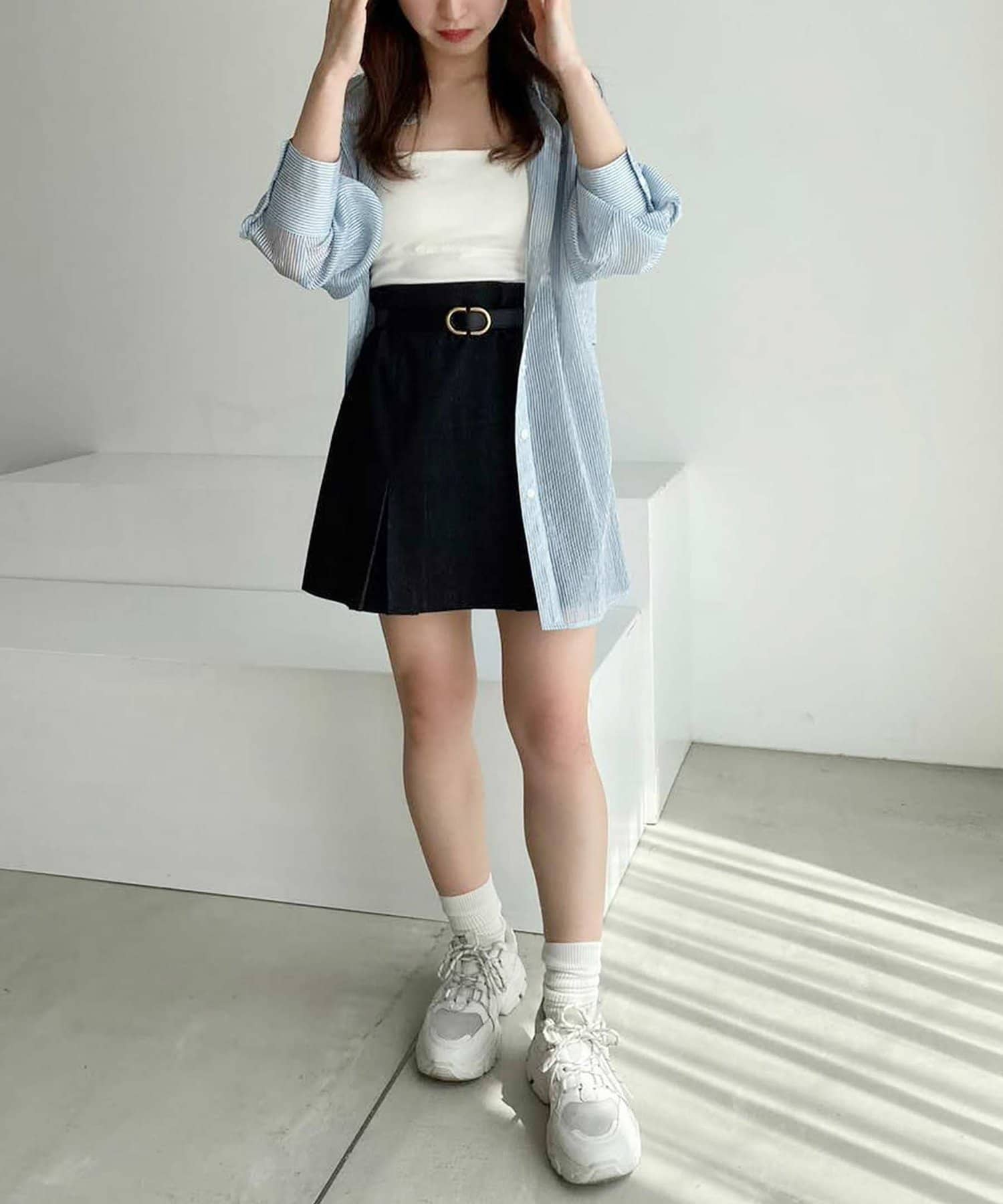今期トレンドのクロップド丈トップスとレイヤードしても◎