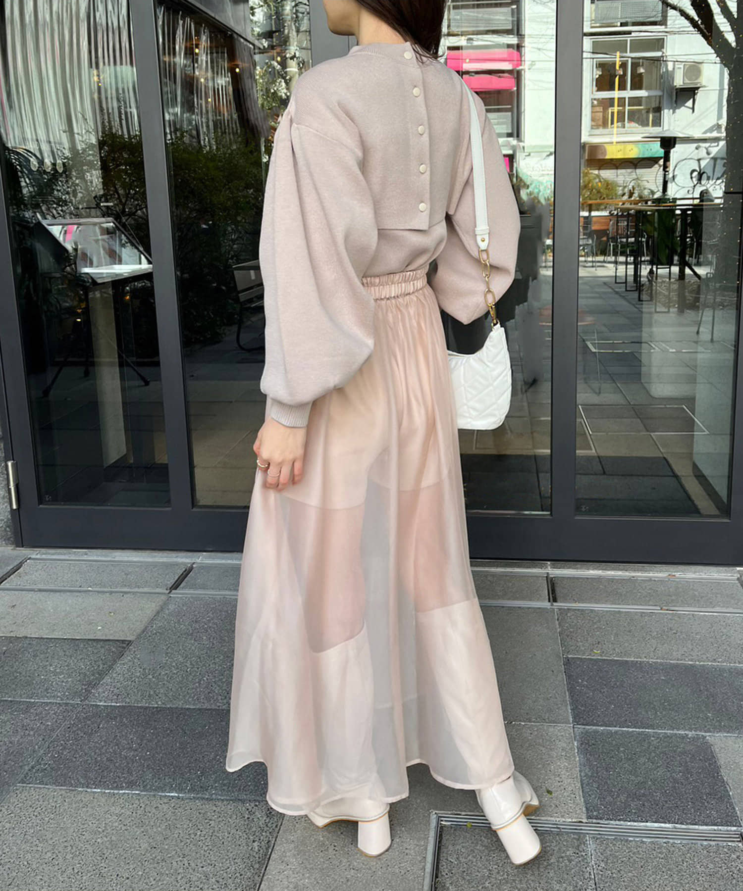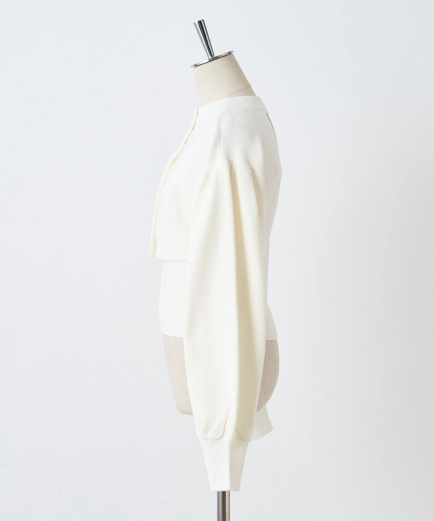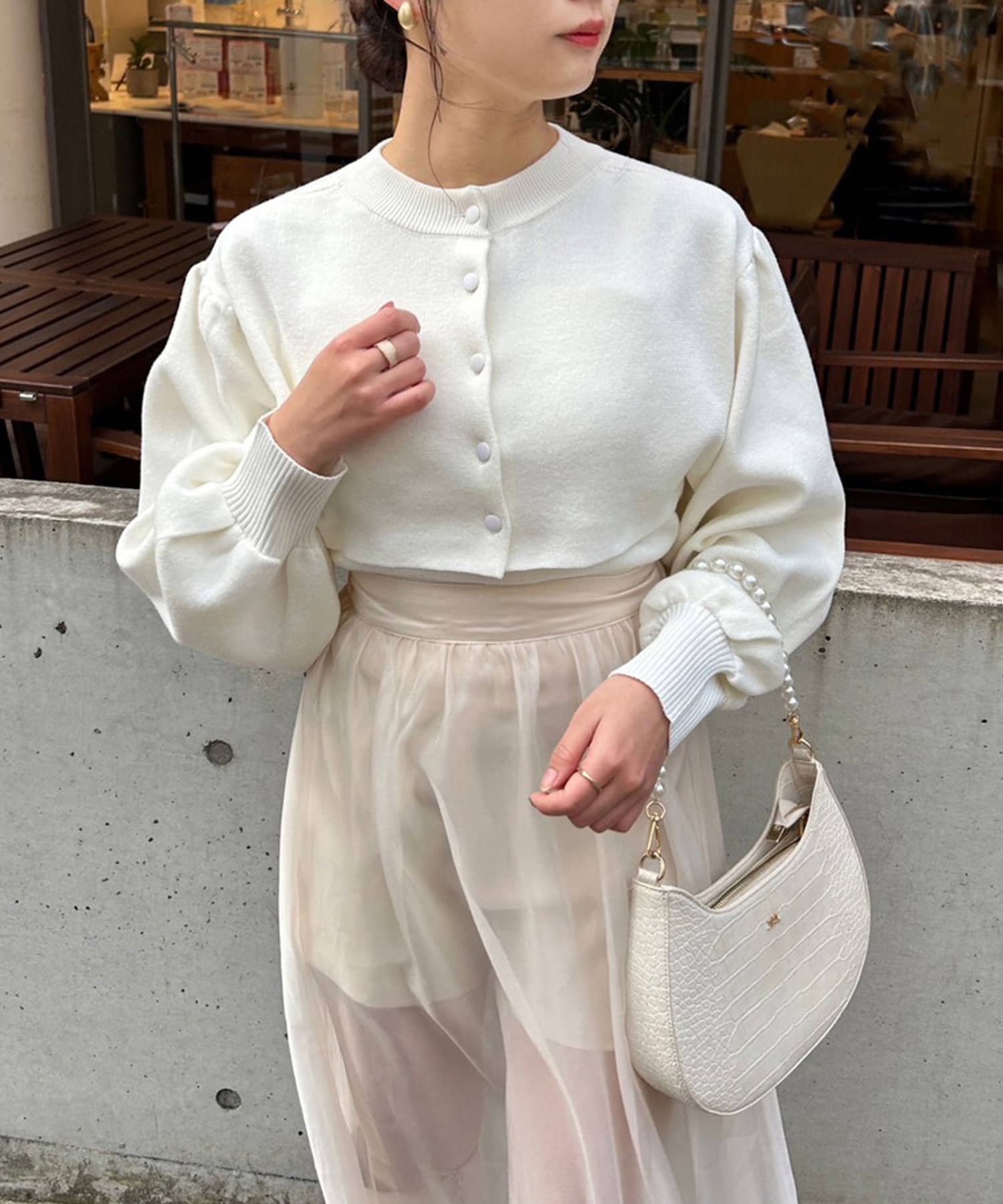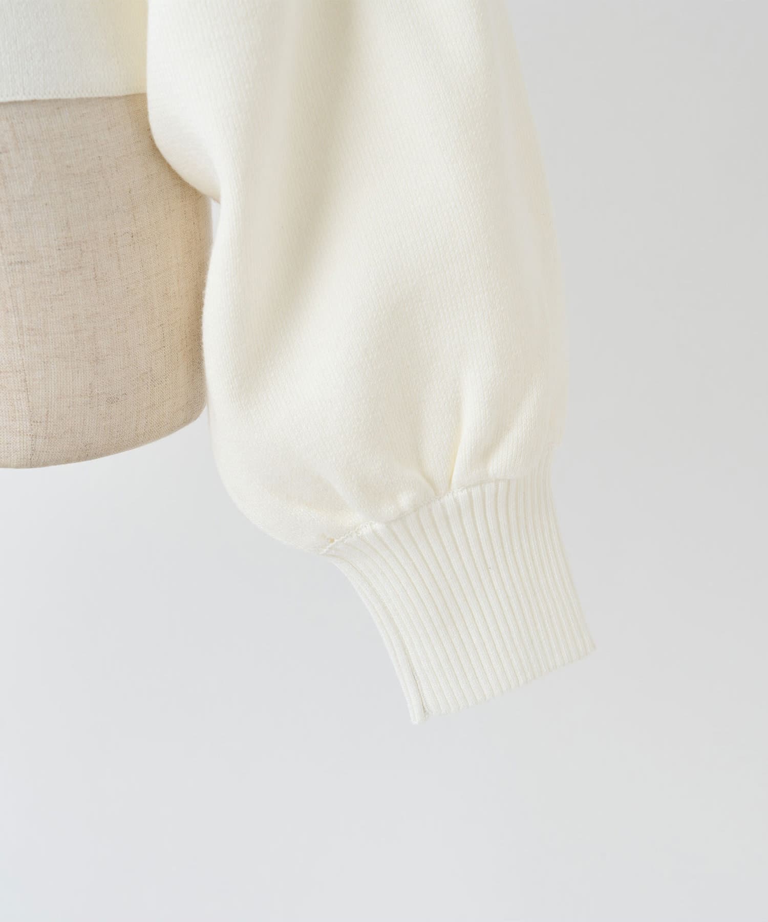袖は丸みのあるバルーンスリーブになっており、女性らしい柔らかさを際立てます。