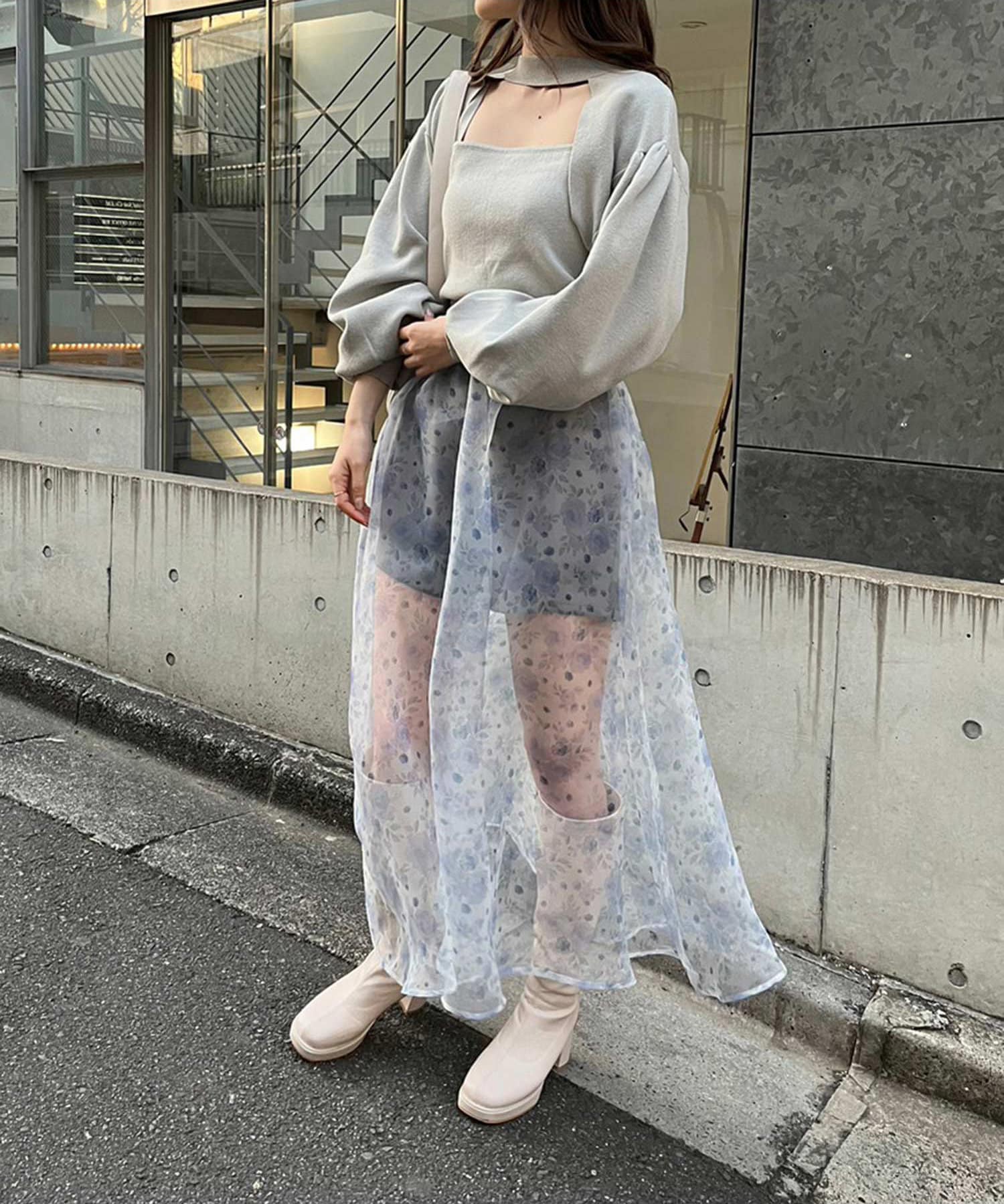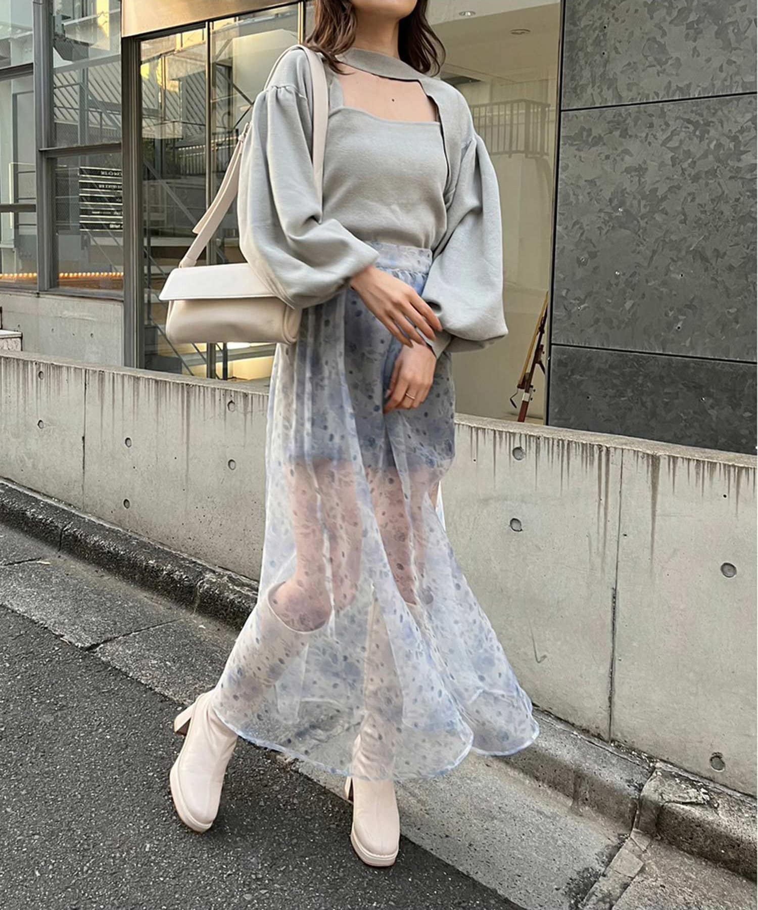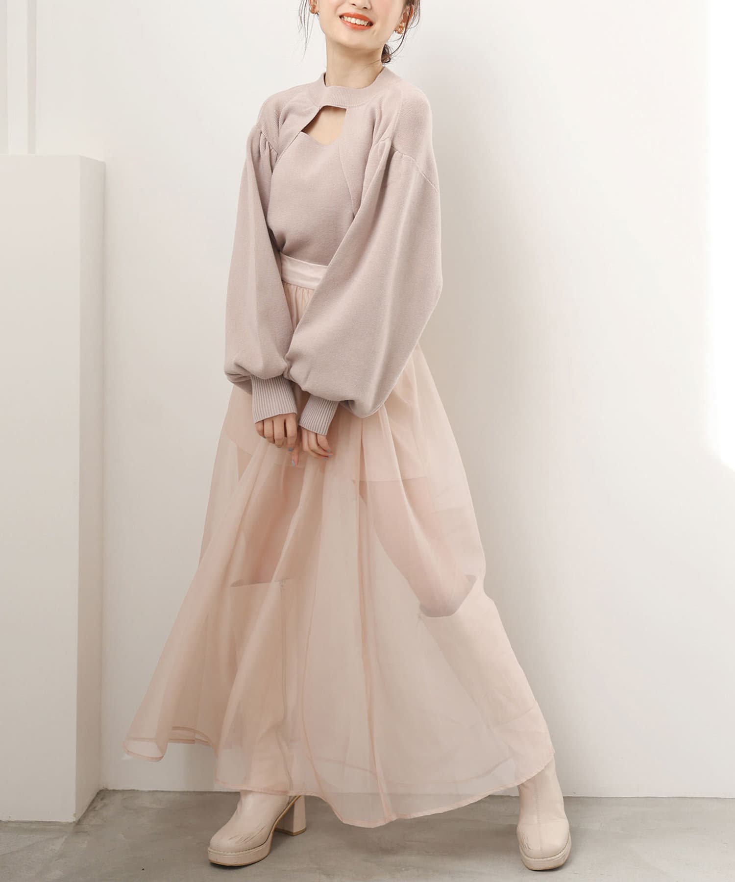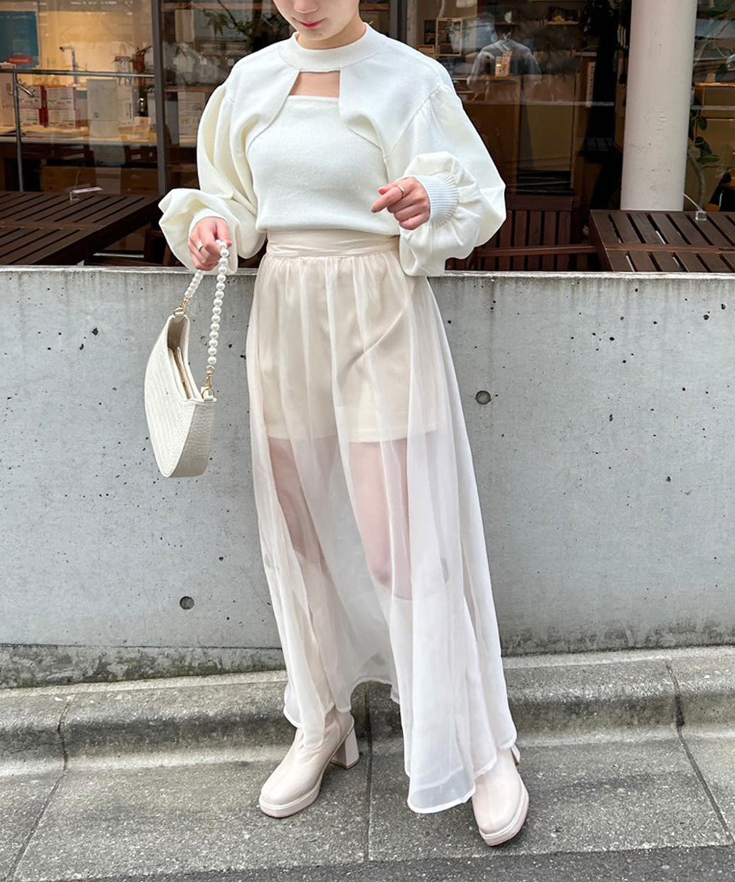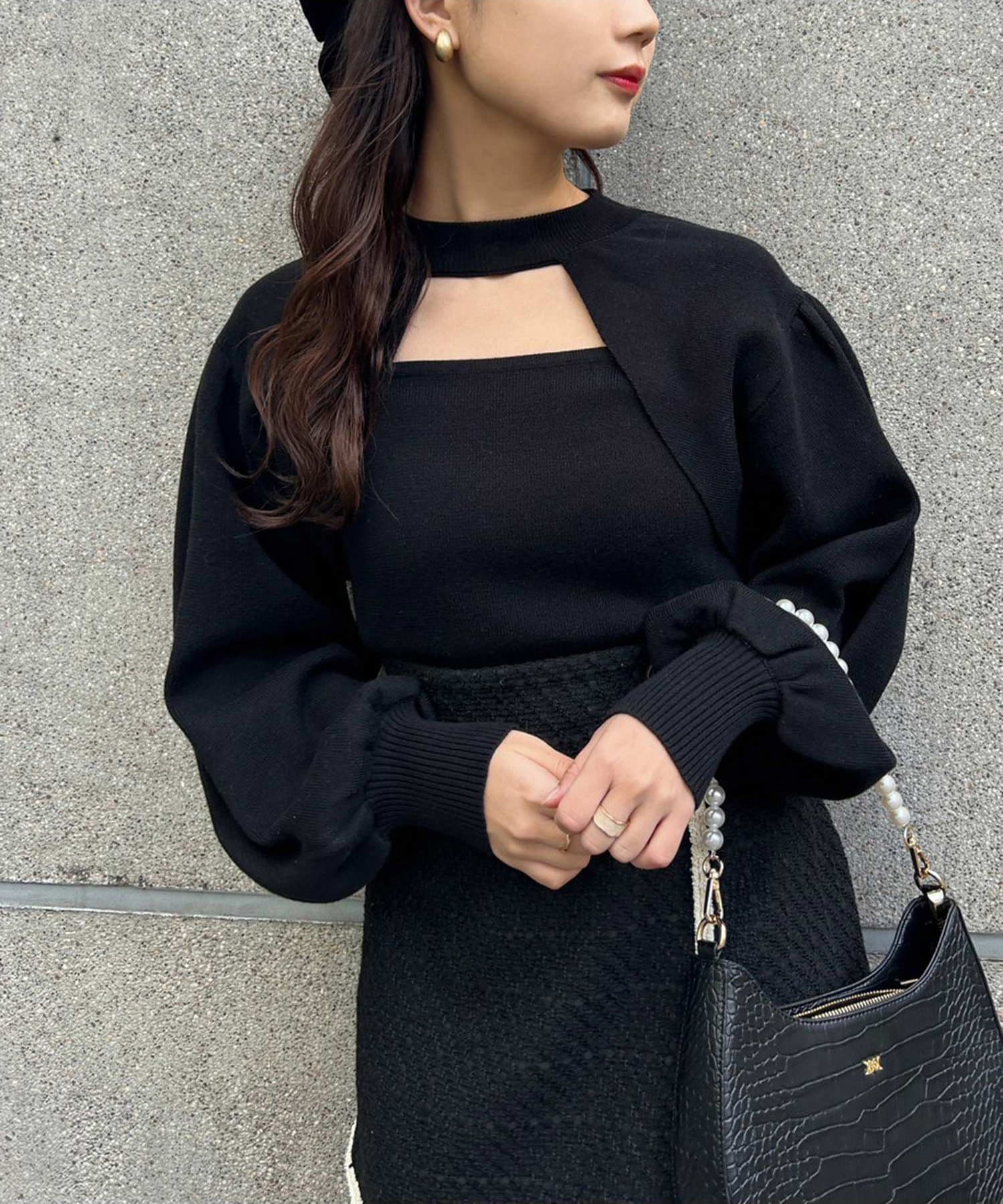 前後2wayで使えるニットトップスとニットビスチェがセットになったアイテム