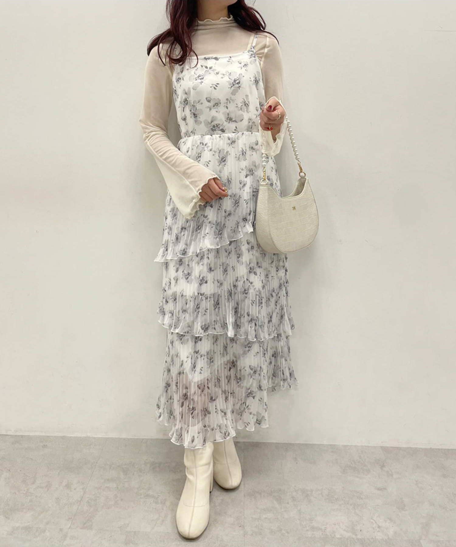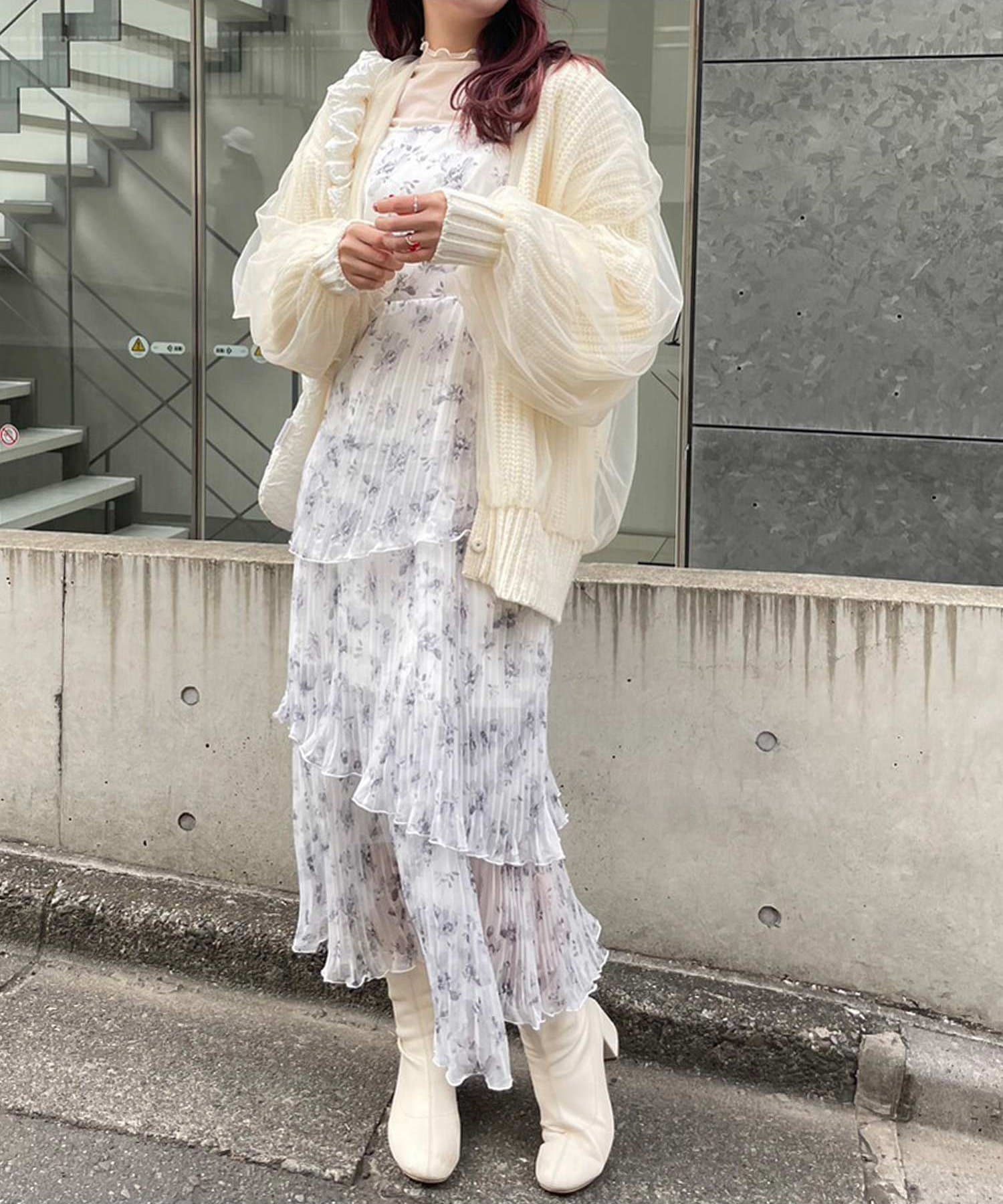 又、キャミワンピースや、ビスチェ、ベストにレイヤードさせれば一気に旬なコーデが完成します。