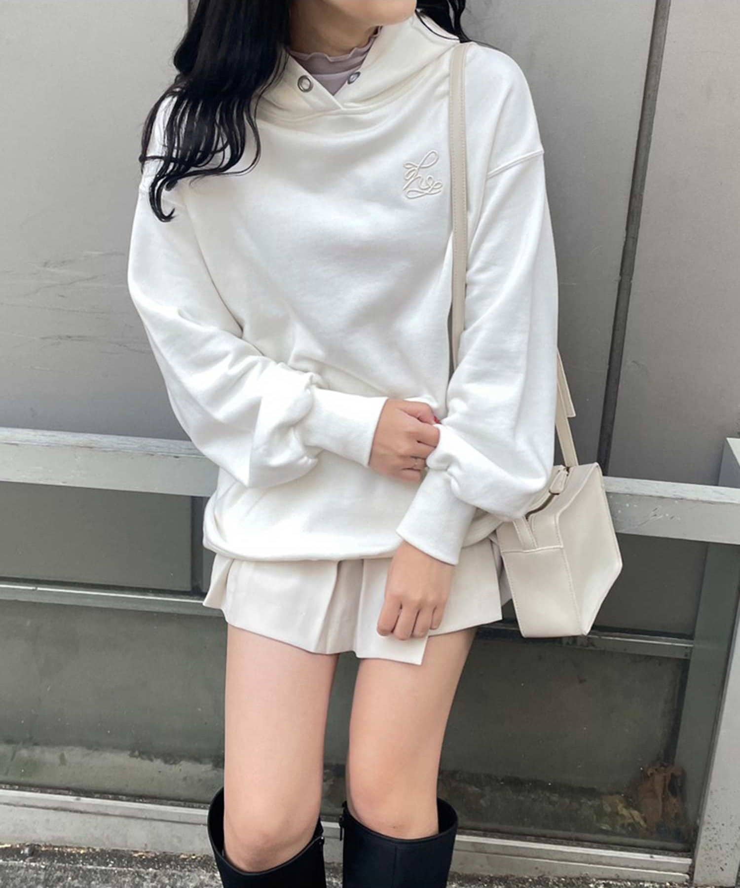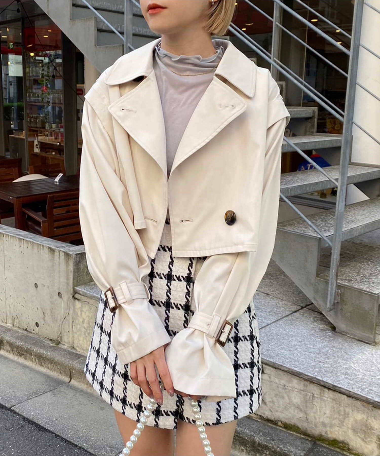 ミニボトムにロングブーツの甘めスタイリングにもオススメです。