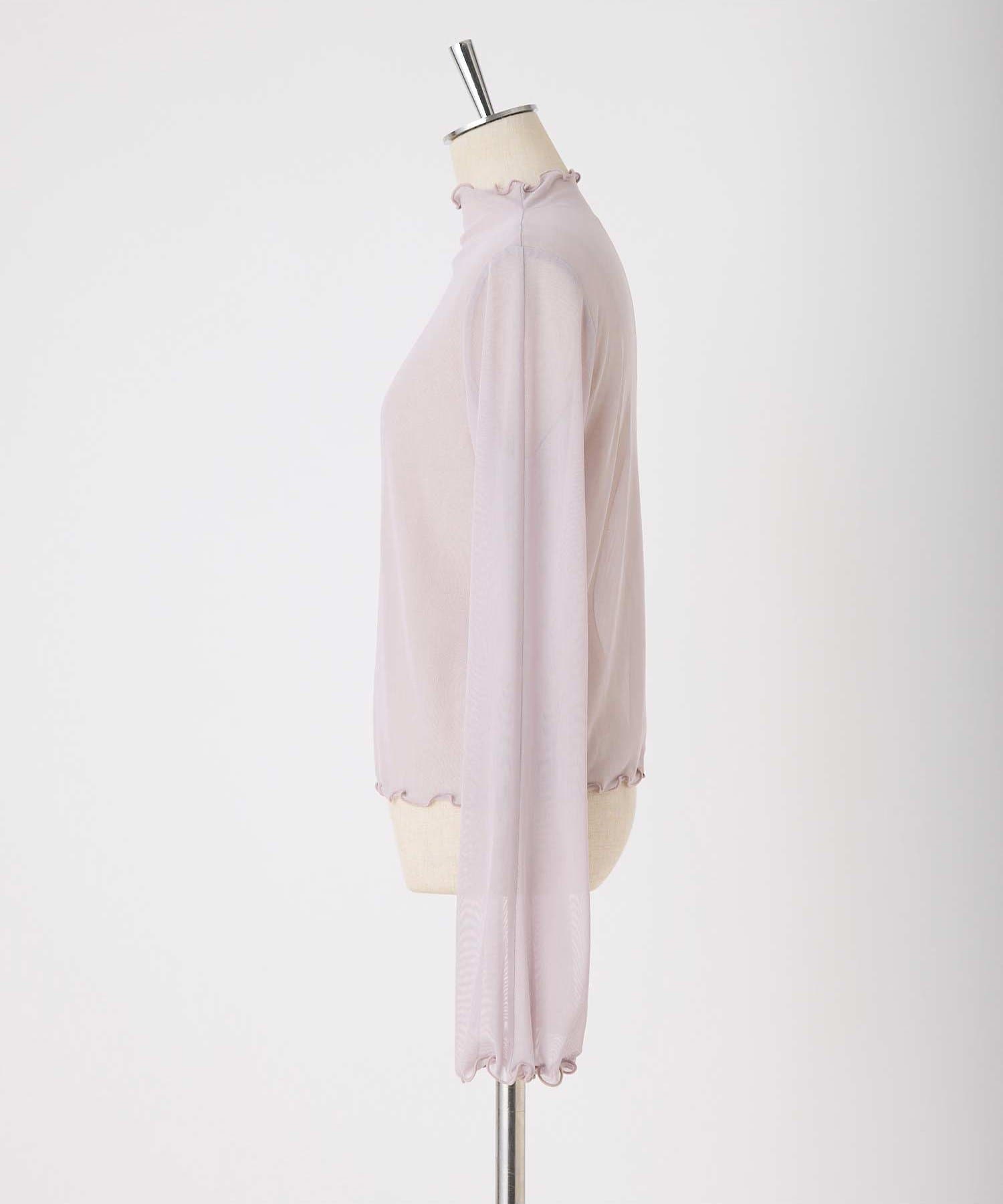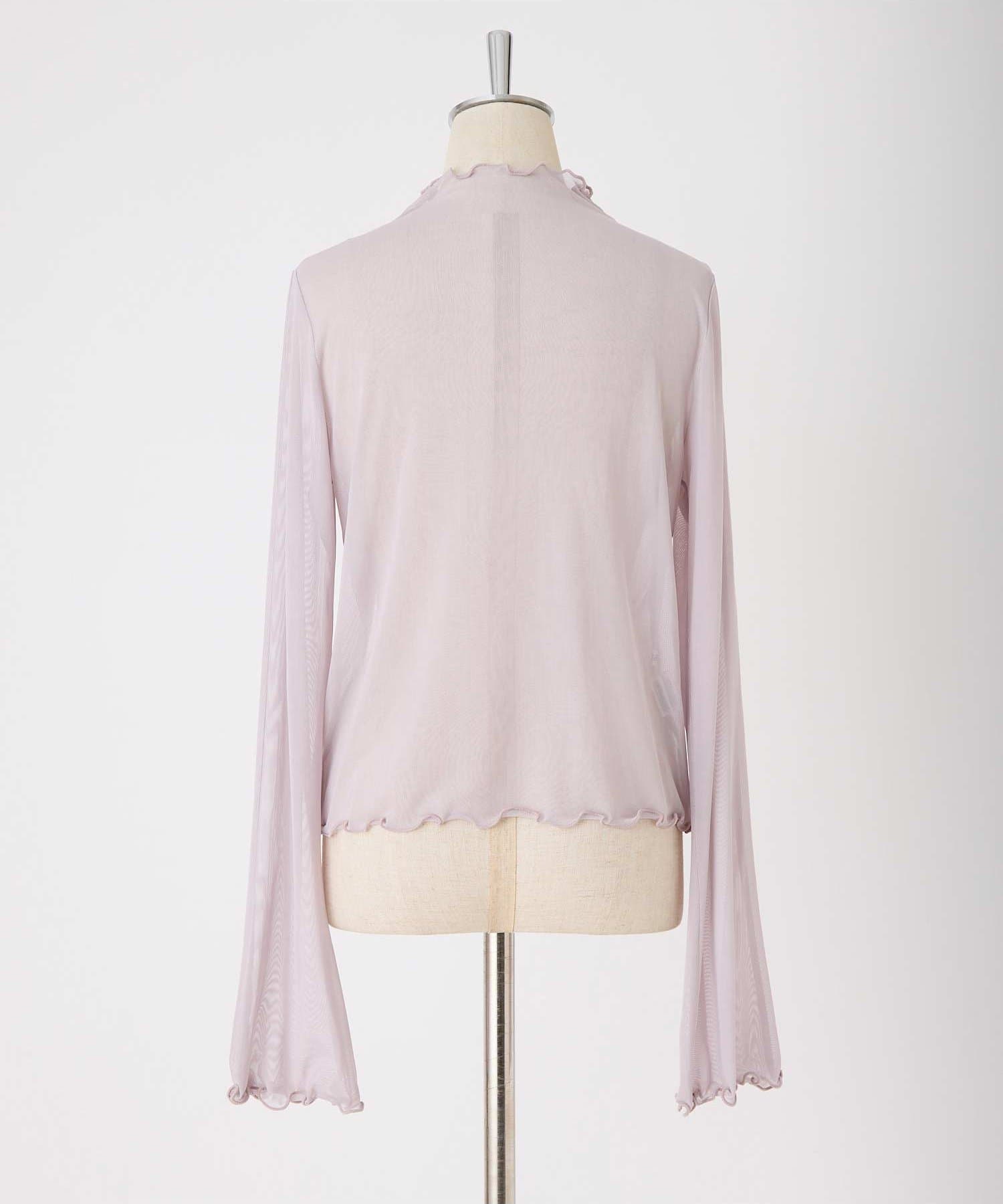 襟ぐりと袖口がメローフリルの仕様になっているのもポイントです。