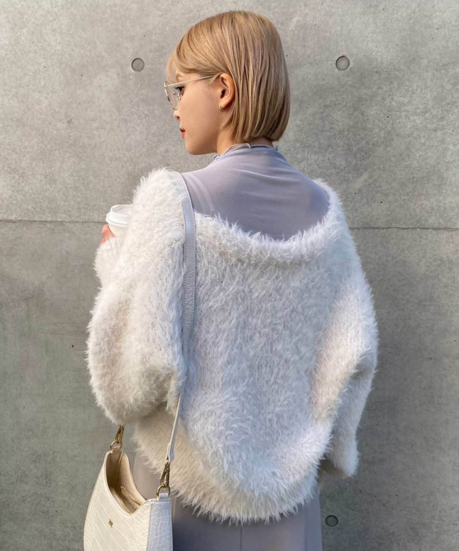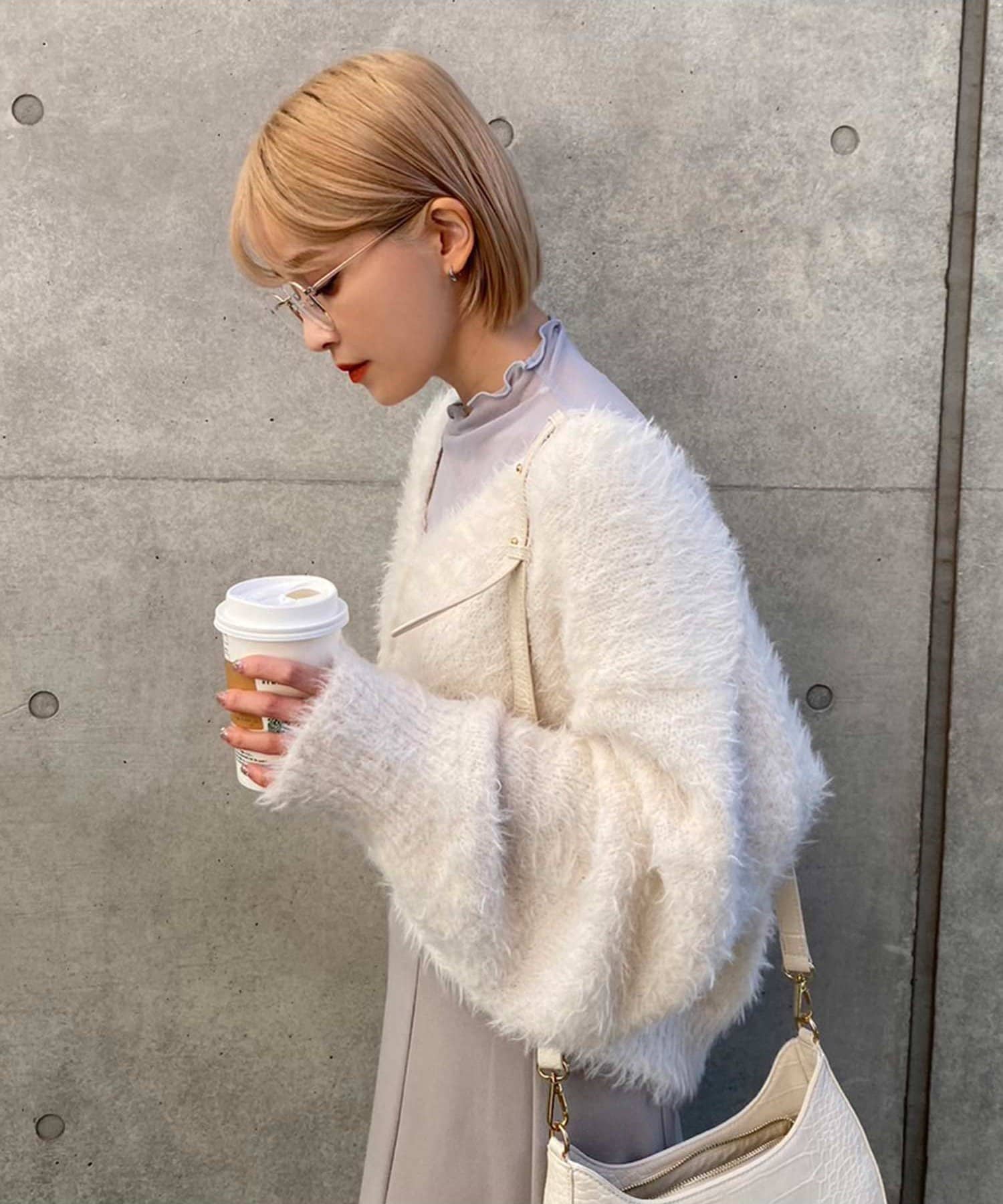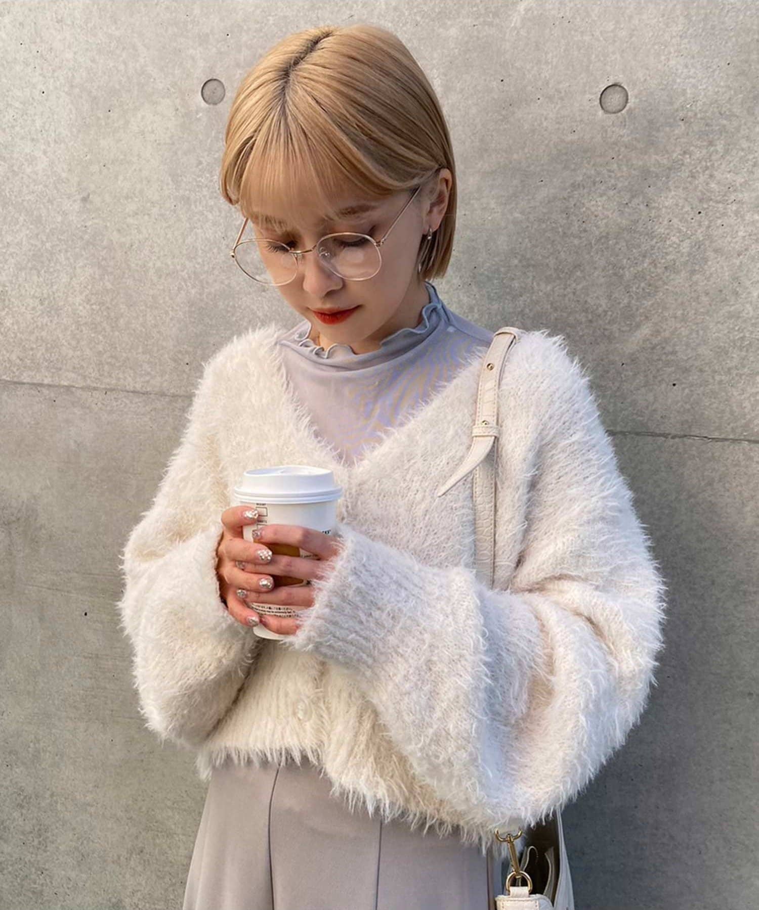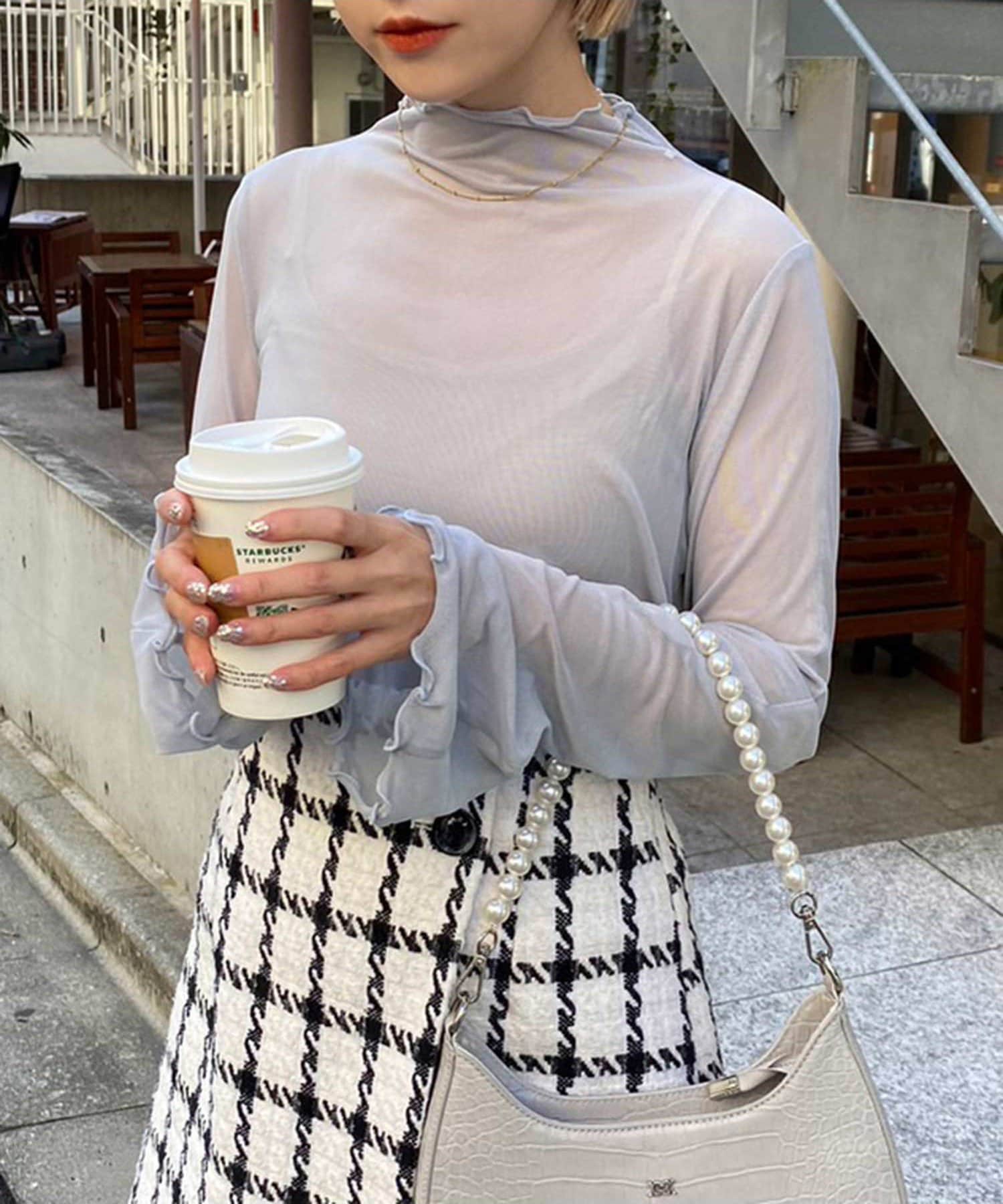 ニットやスウェットとレイヤードスタイリングでメローフリルをチラ見せするのがオススメ。