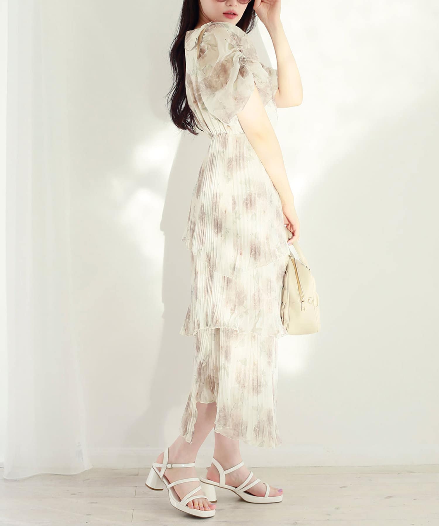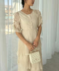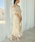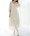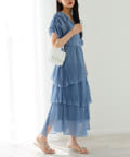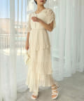 シルエットは、裾に向かってなだらかに広がるティアードデザイン。