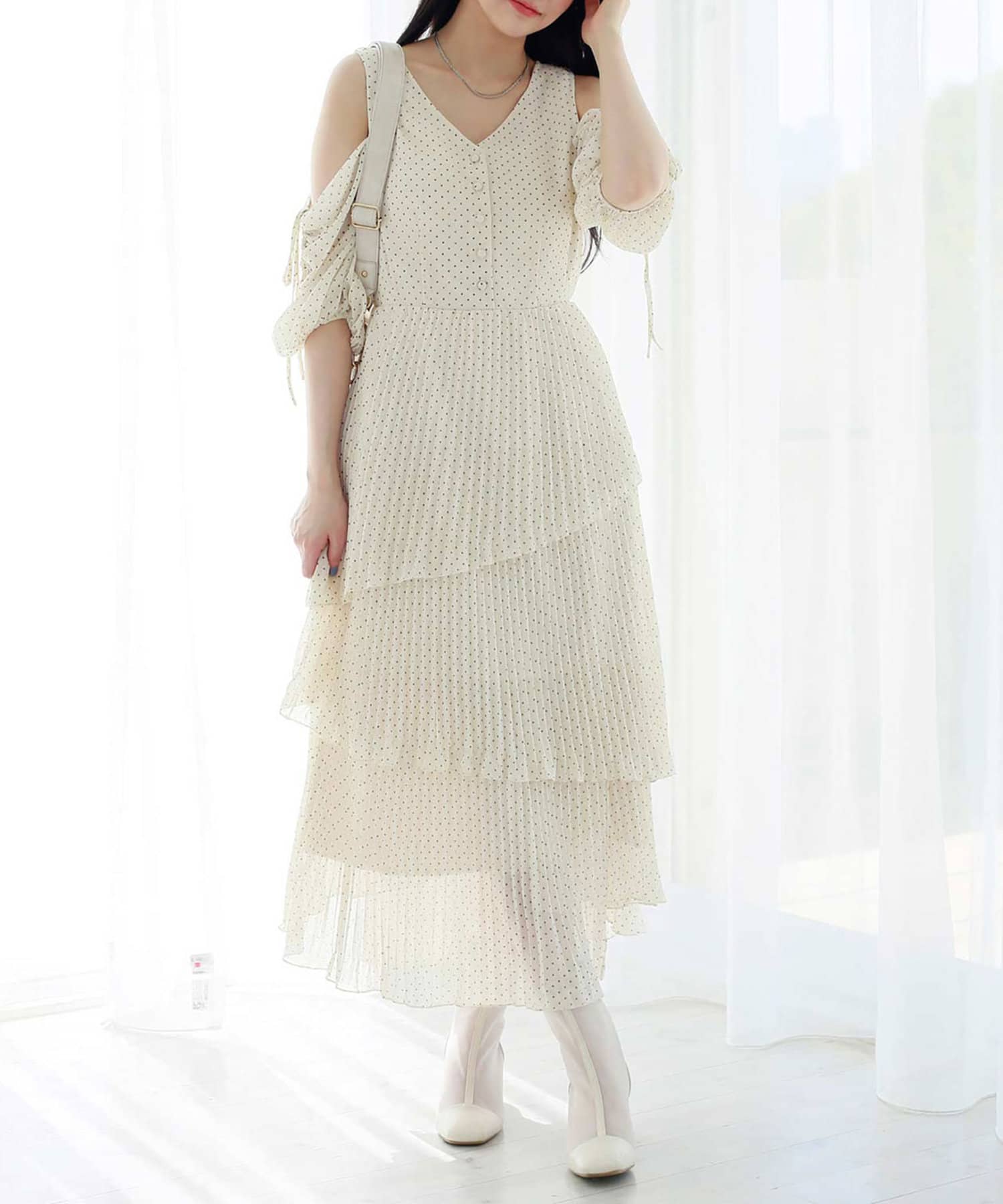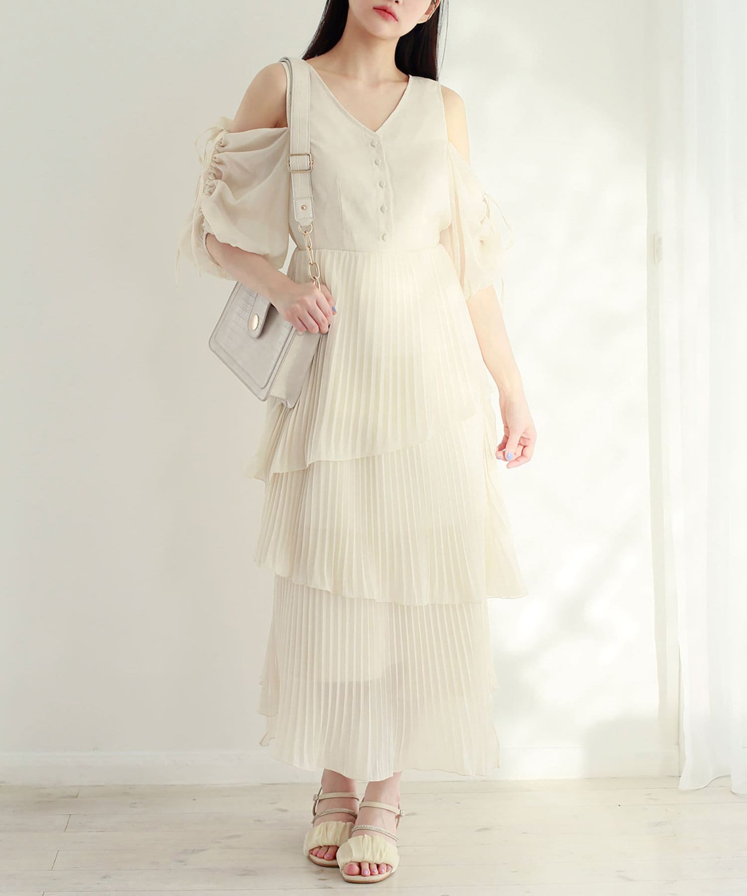 プリーツ仕様になっているのでより華奢見えします。