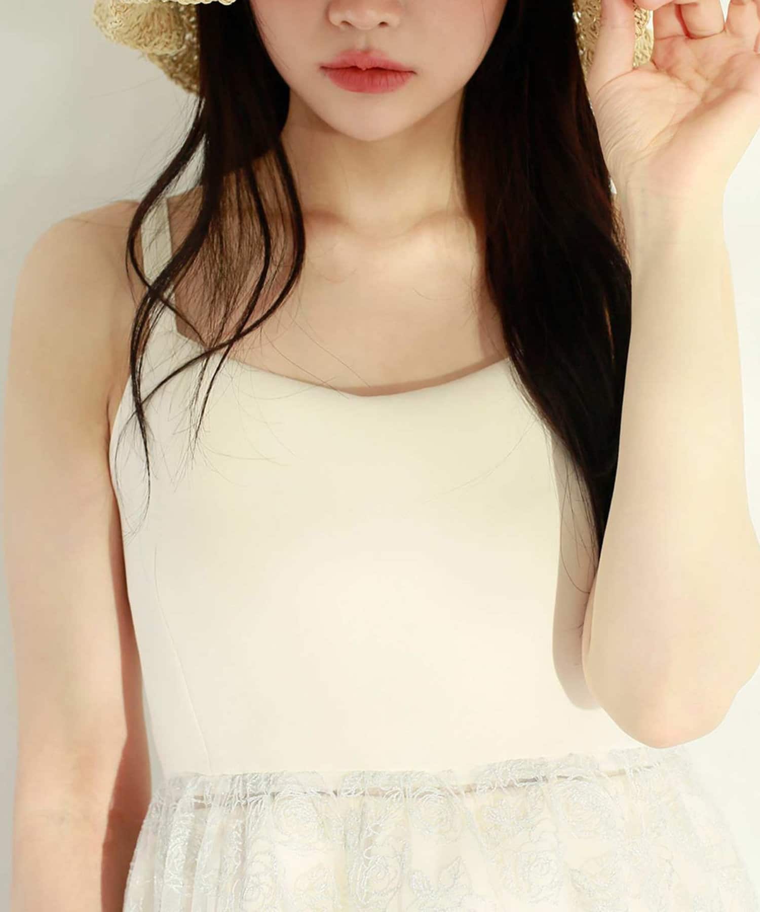 夏はシアートップスやキャミソールで