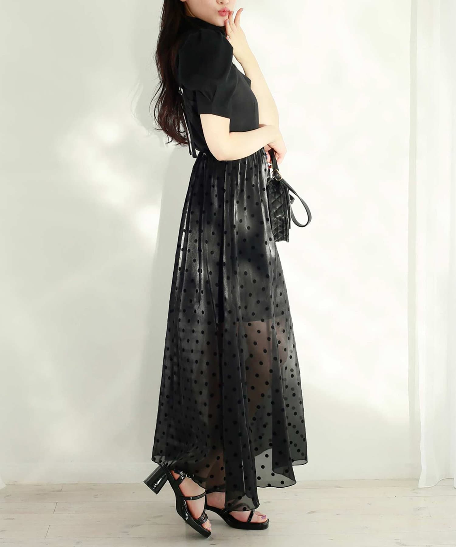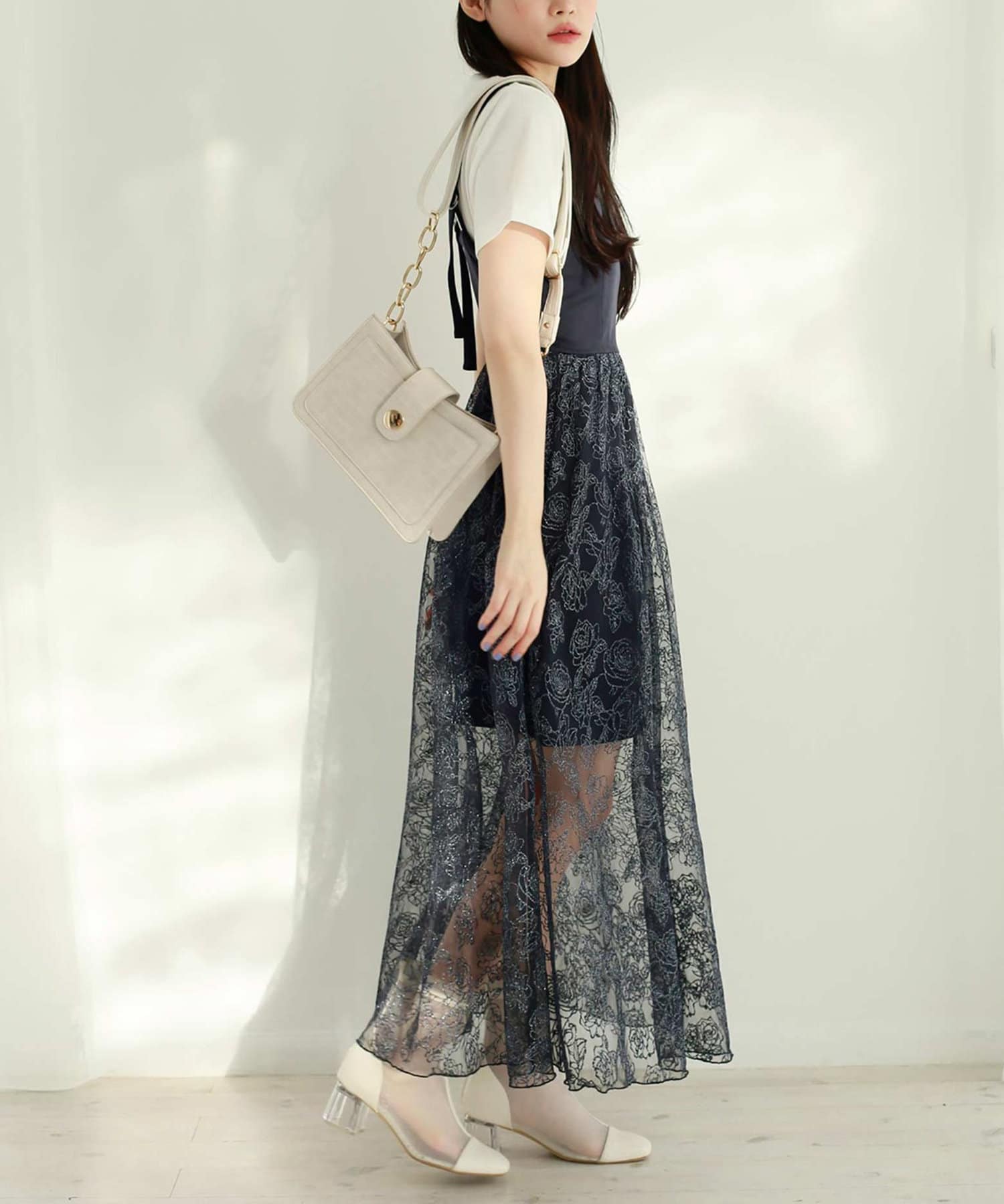 裏地は短めなので、レースからほんのり肌の透け感が出るのが今年らしいポイント!