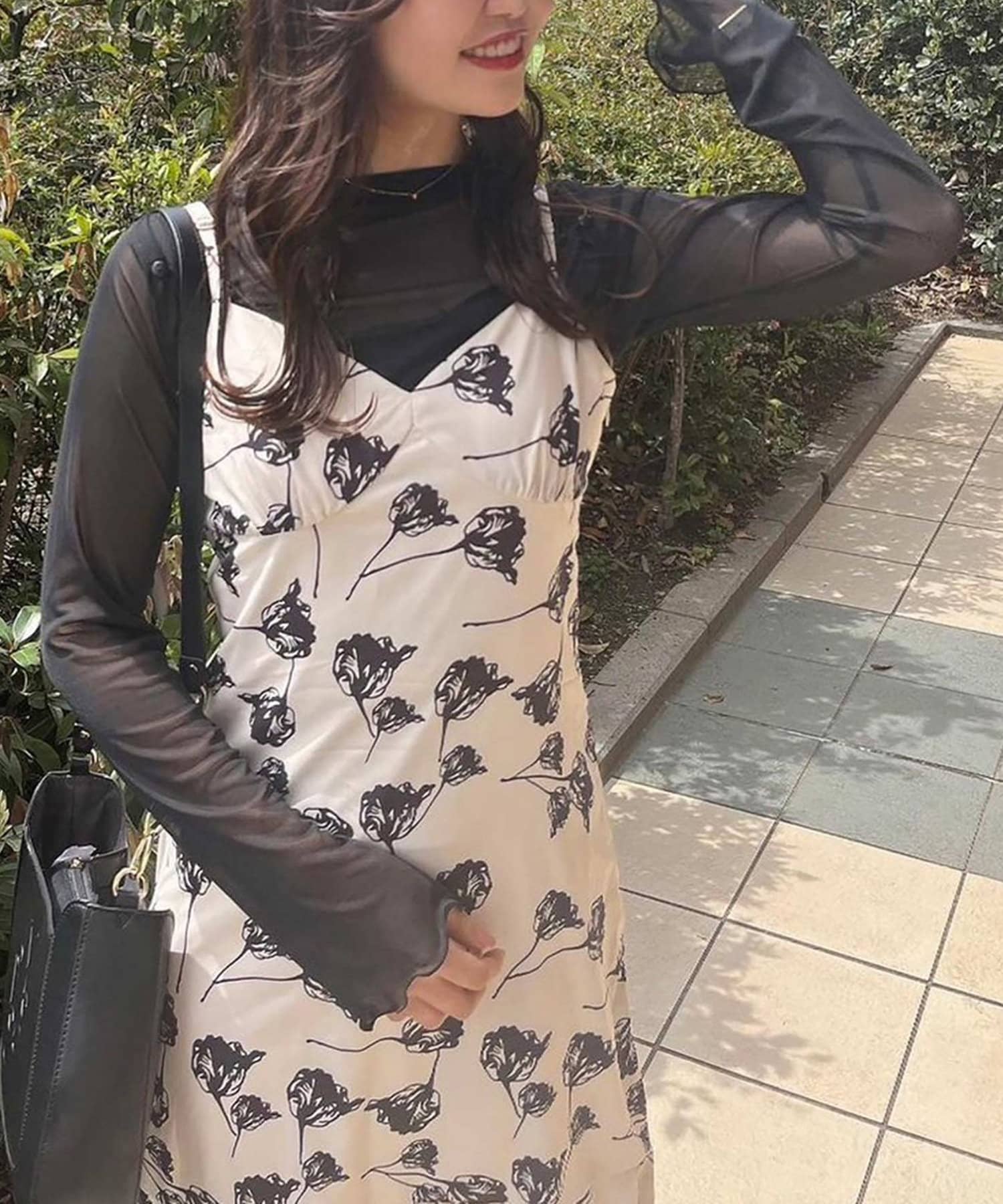 これからのシーズンはシアータートルやブラウスと重ね着するのがオススメ。