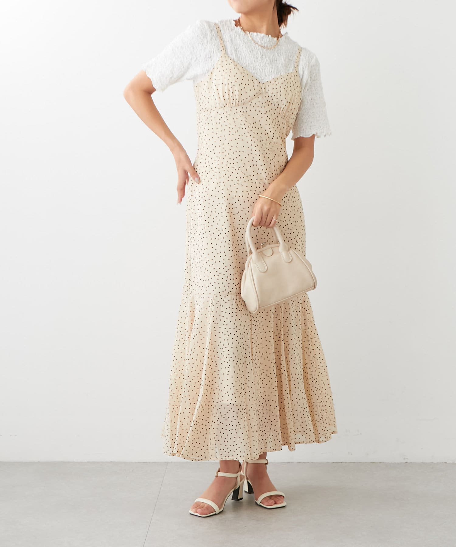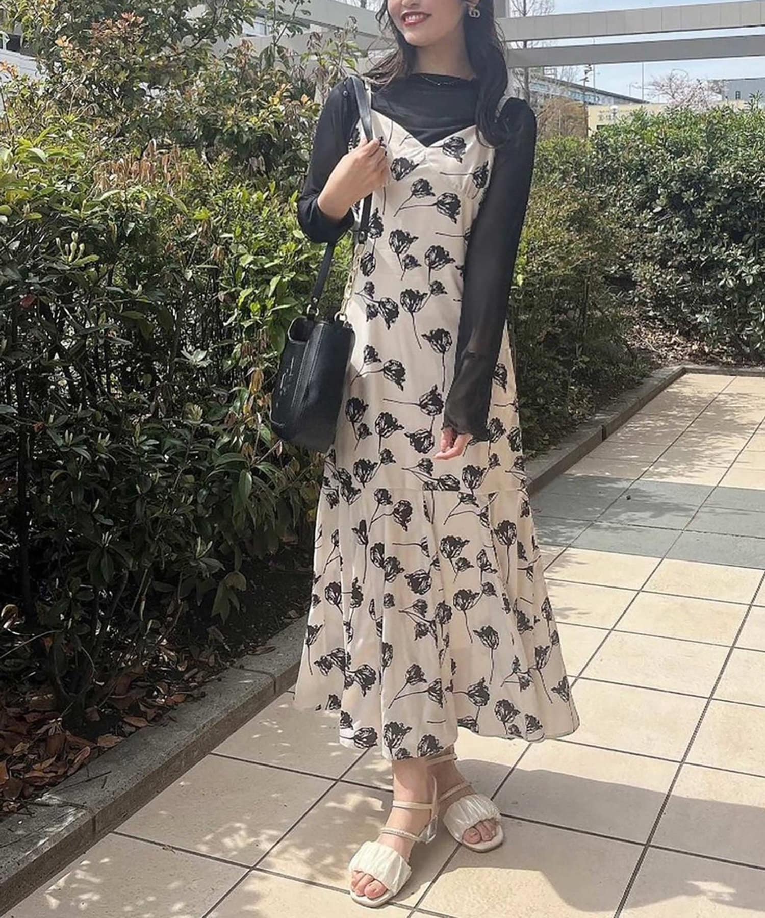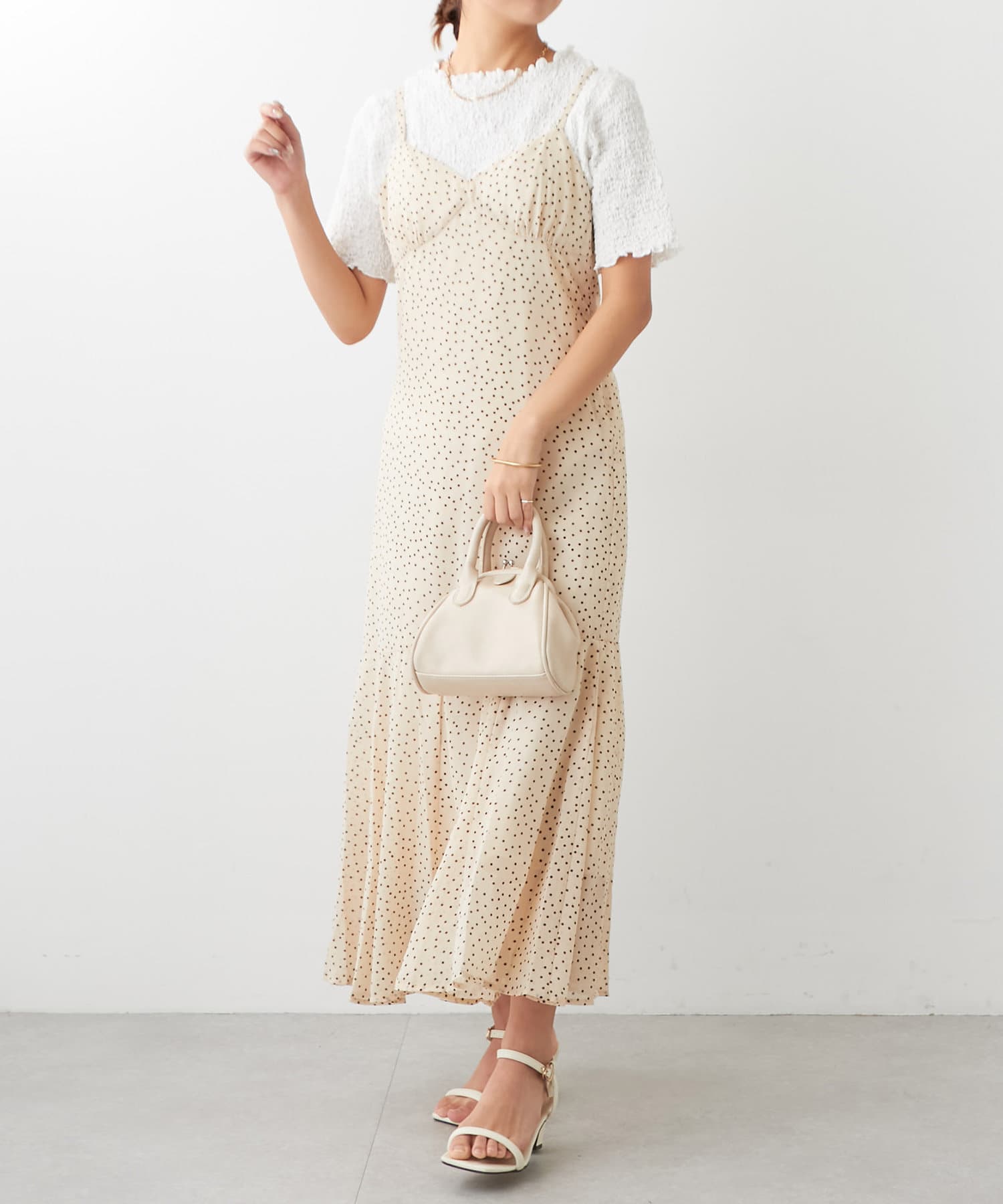 動く度にひらっとした揺れ感で女性らしい印象に。