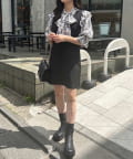 ミニボトムにブーツを合わせると王道スタイリングに。