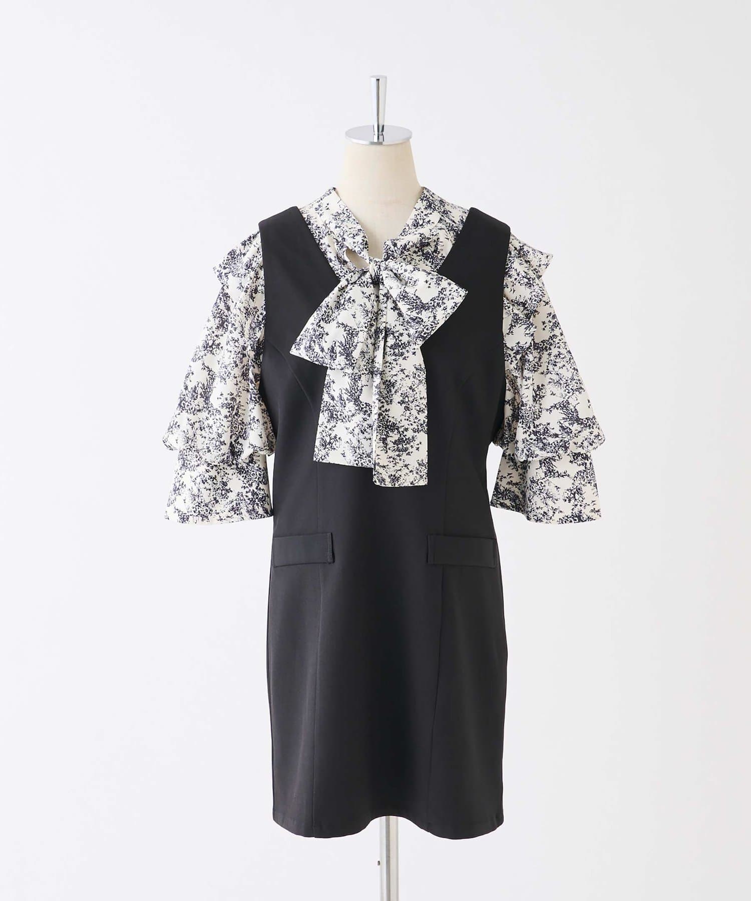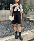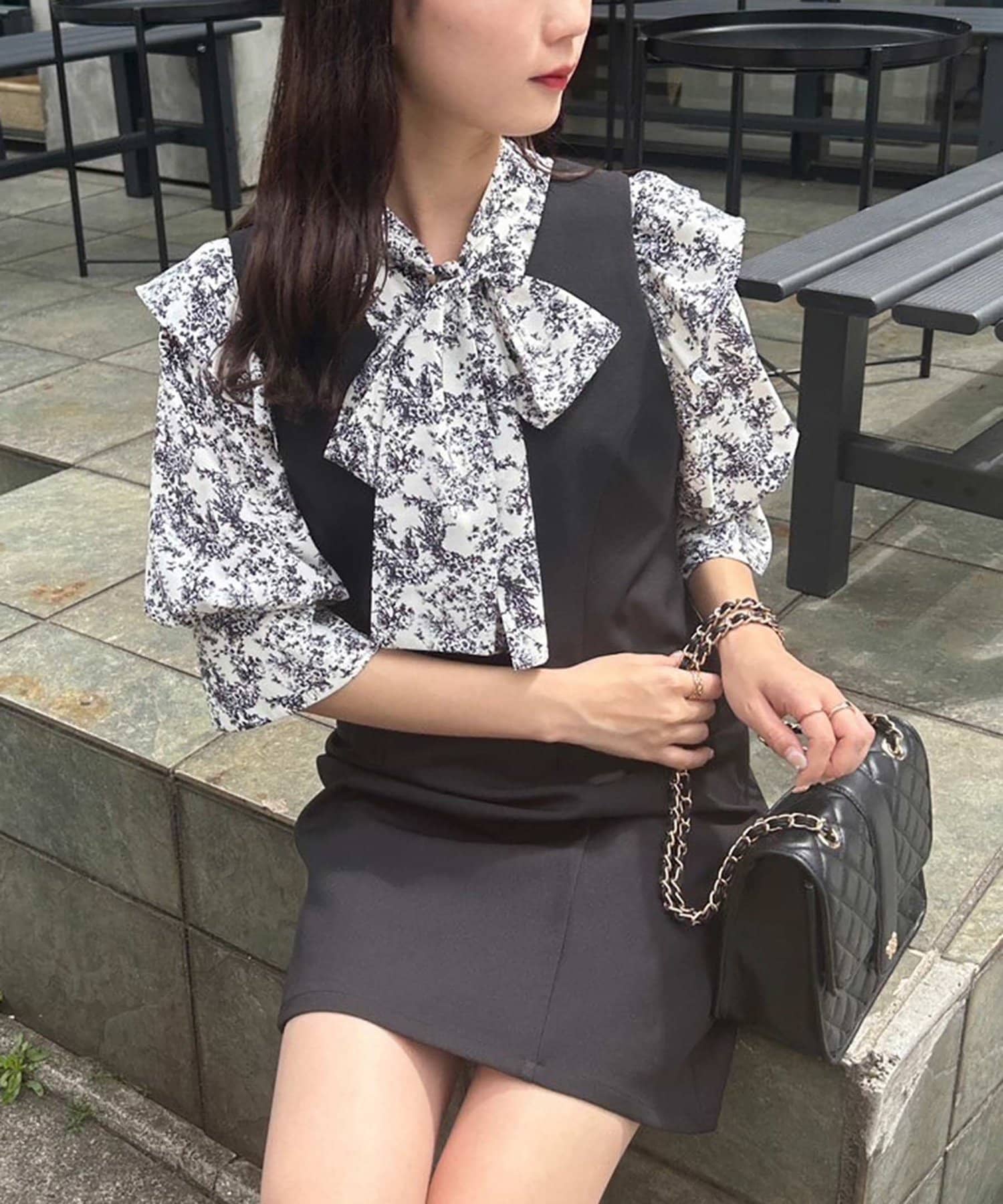 大人気のボウタイブラウス×ジャンスカワンピのセットアイテム