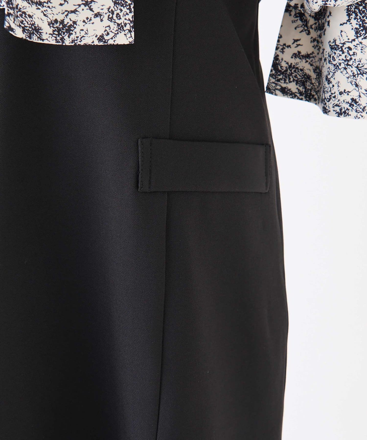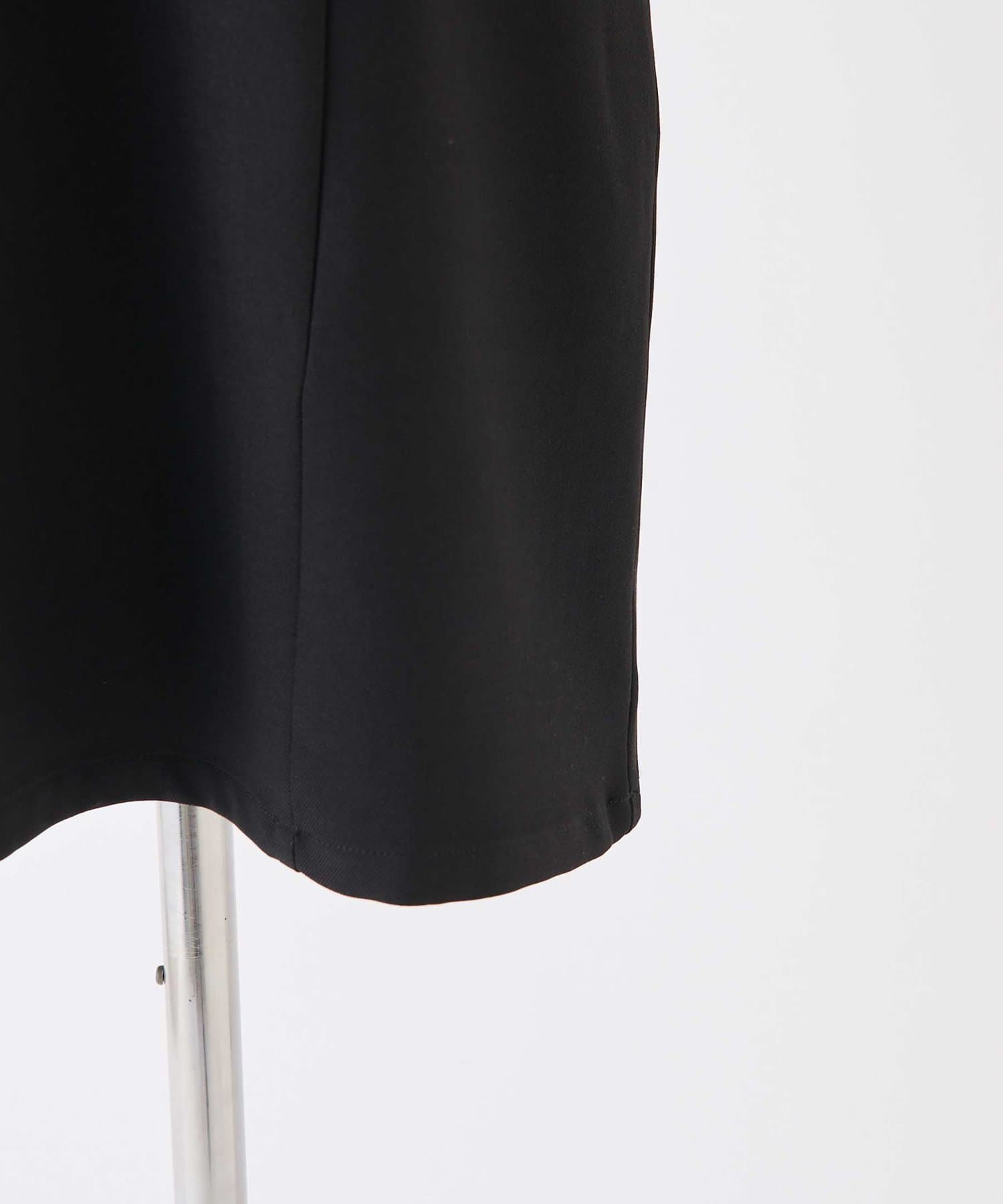 ワンピースはアイラインのすっきりしたシルエットのジャンスカワンピ。